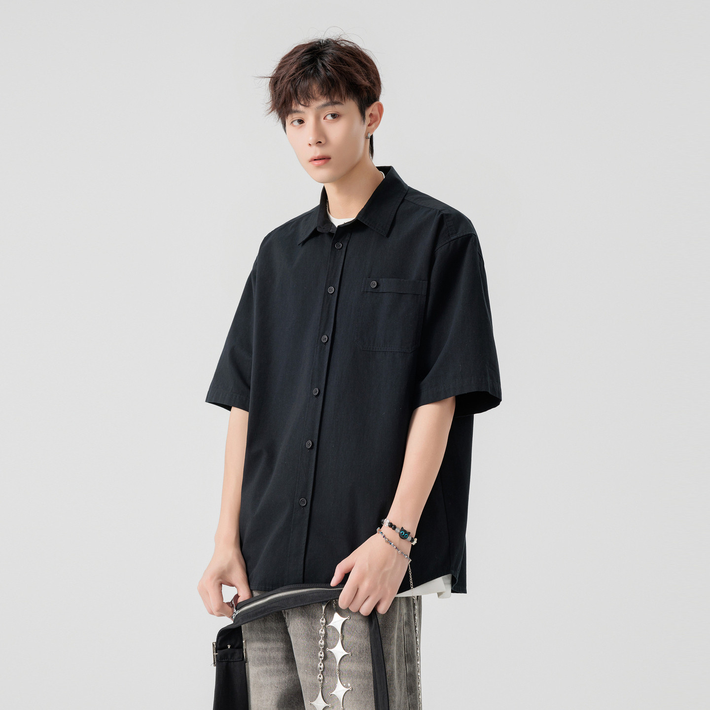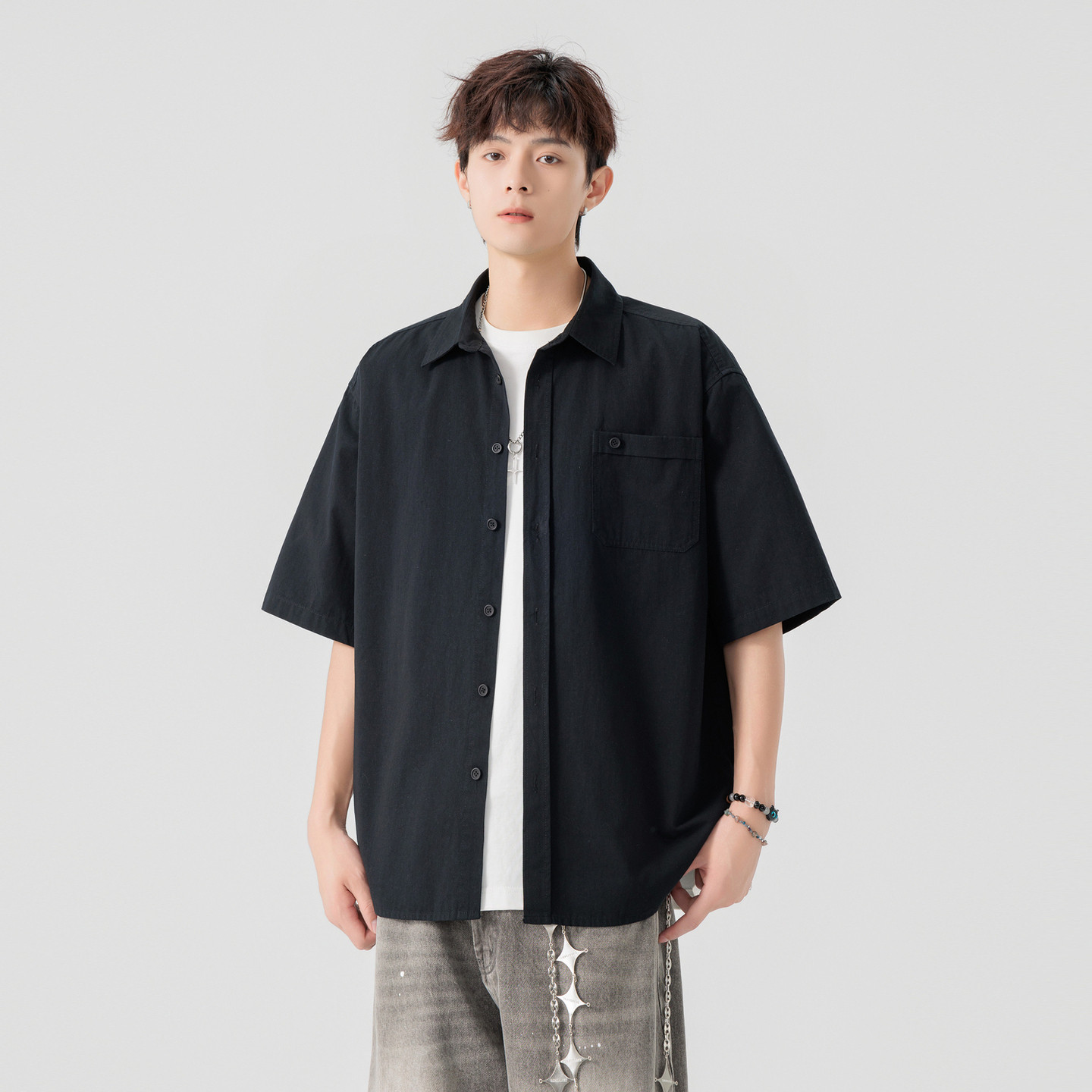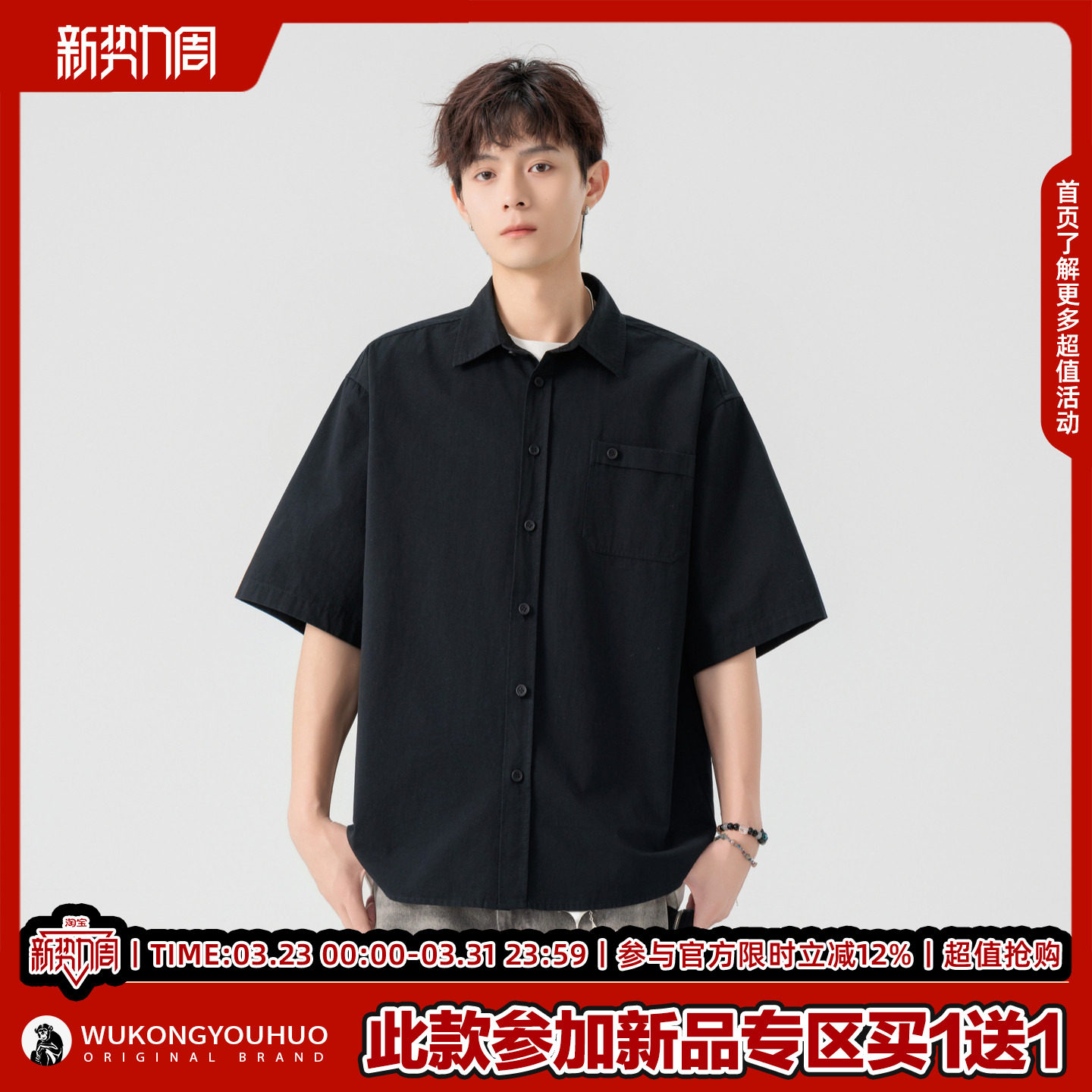 男女潮牌复古宽松百搭休闲半袖 衬衫 衬衣 2026纯色短袖 悟空有货夏季