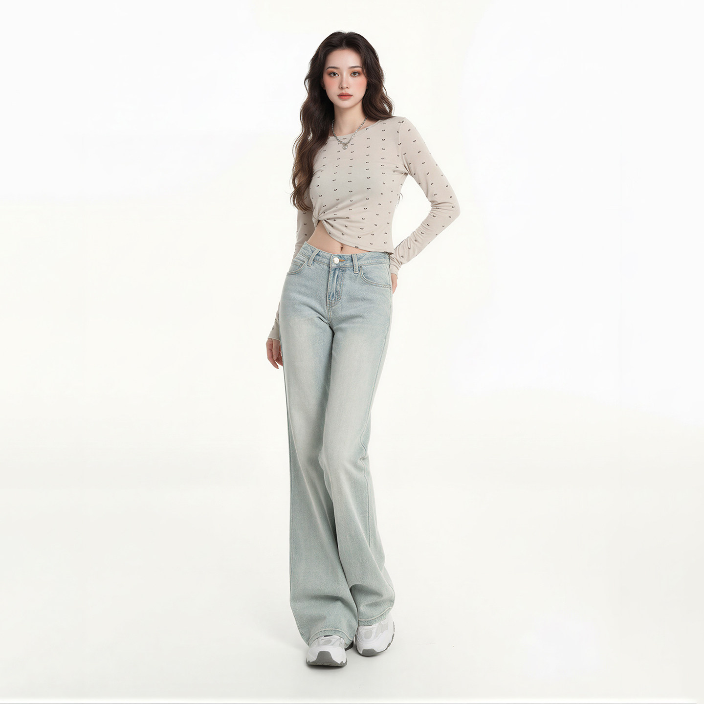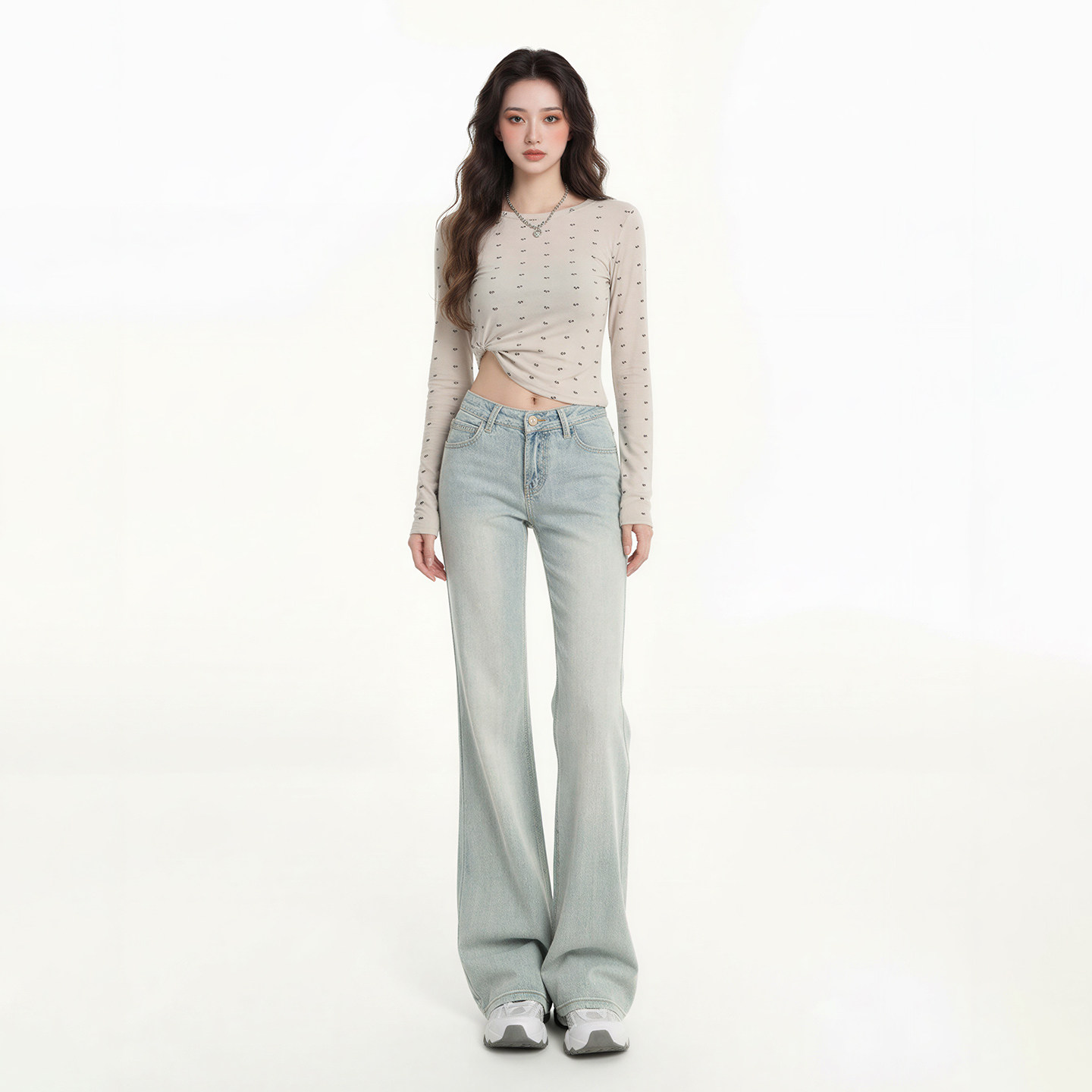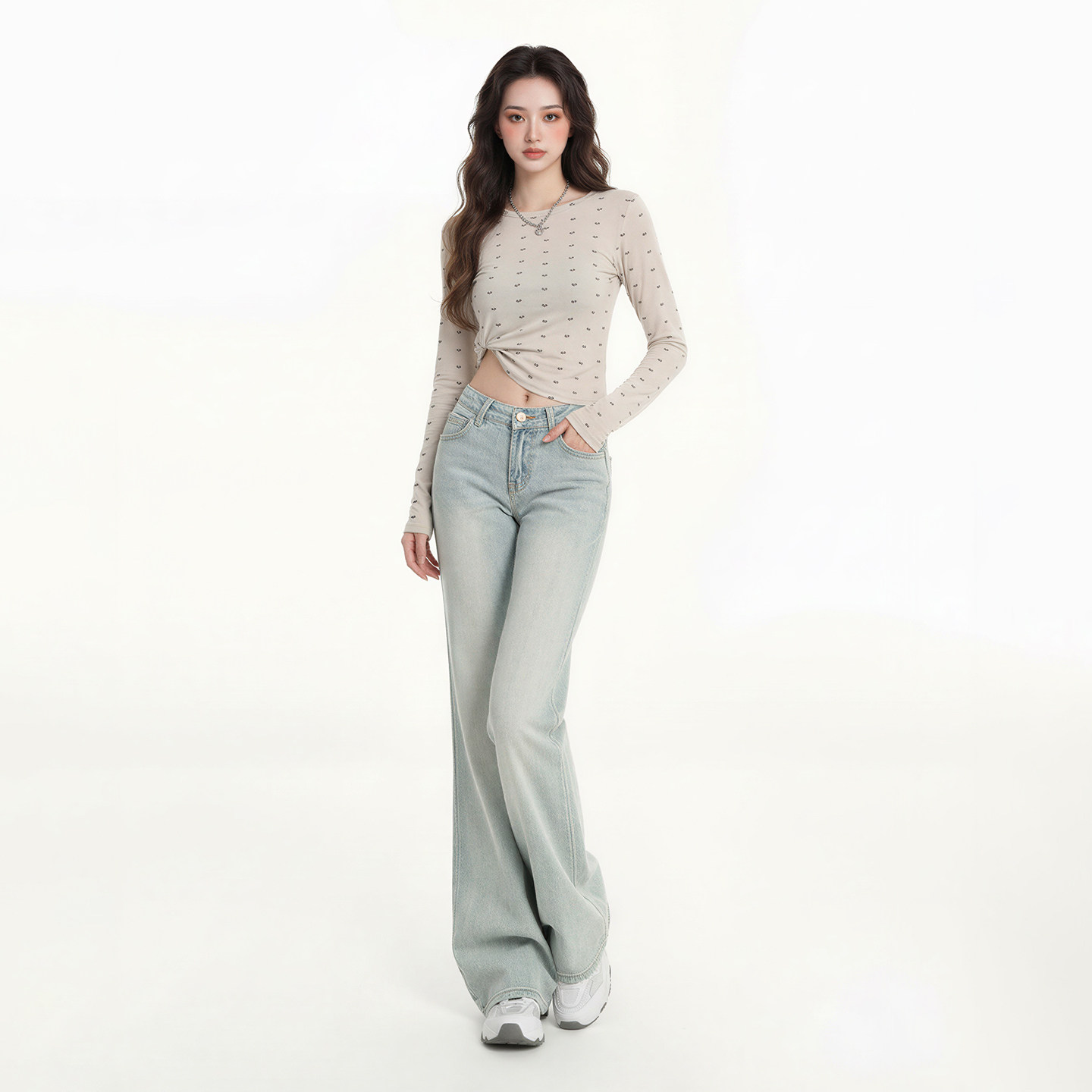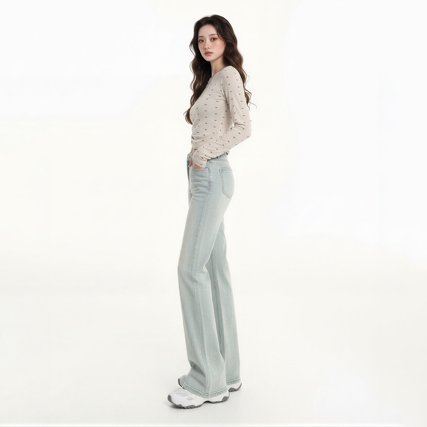 艾格水洗浅蓝色微喇牛仔裤 女2026低腰紧身显瘦小个子拖地马蹄裤