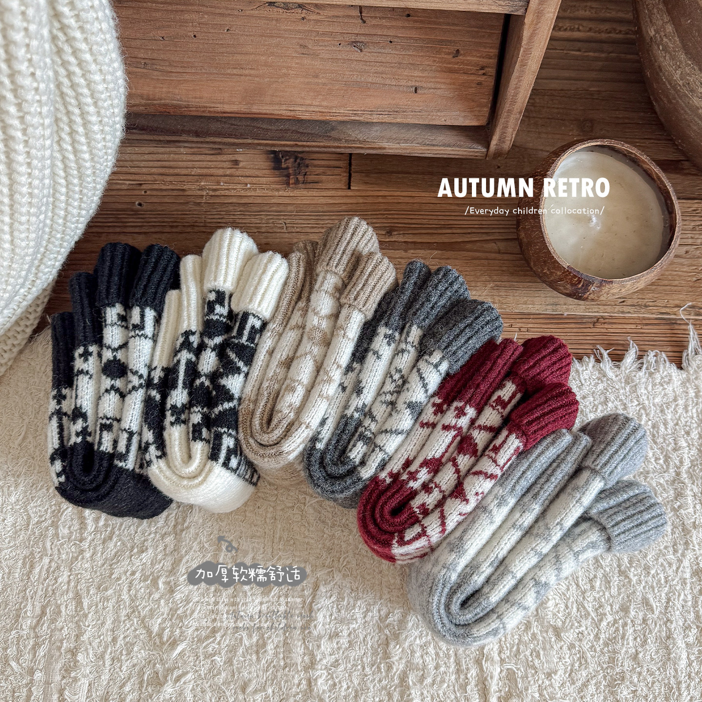 女童袜套春秋加厚羊毛儿童韩版 女孩长筒袜 ins雪花堆堆小腿袜秋季