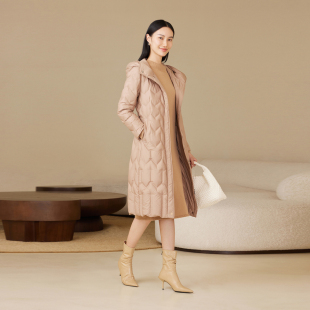 时尚 女长款 波司登奥莱秋款 优雅气质连帽收腰轻薄羽绒服 鹅绒