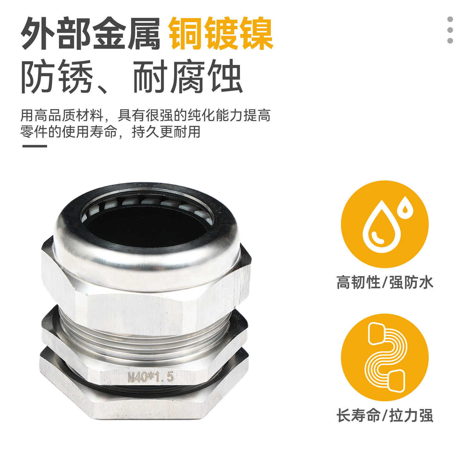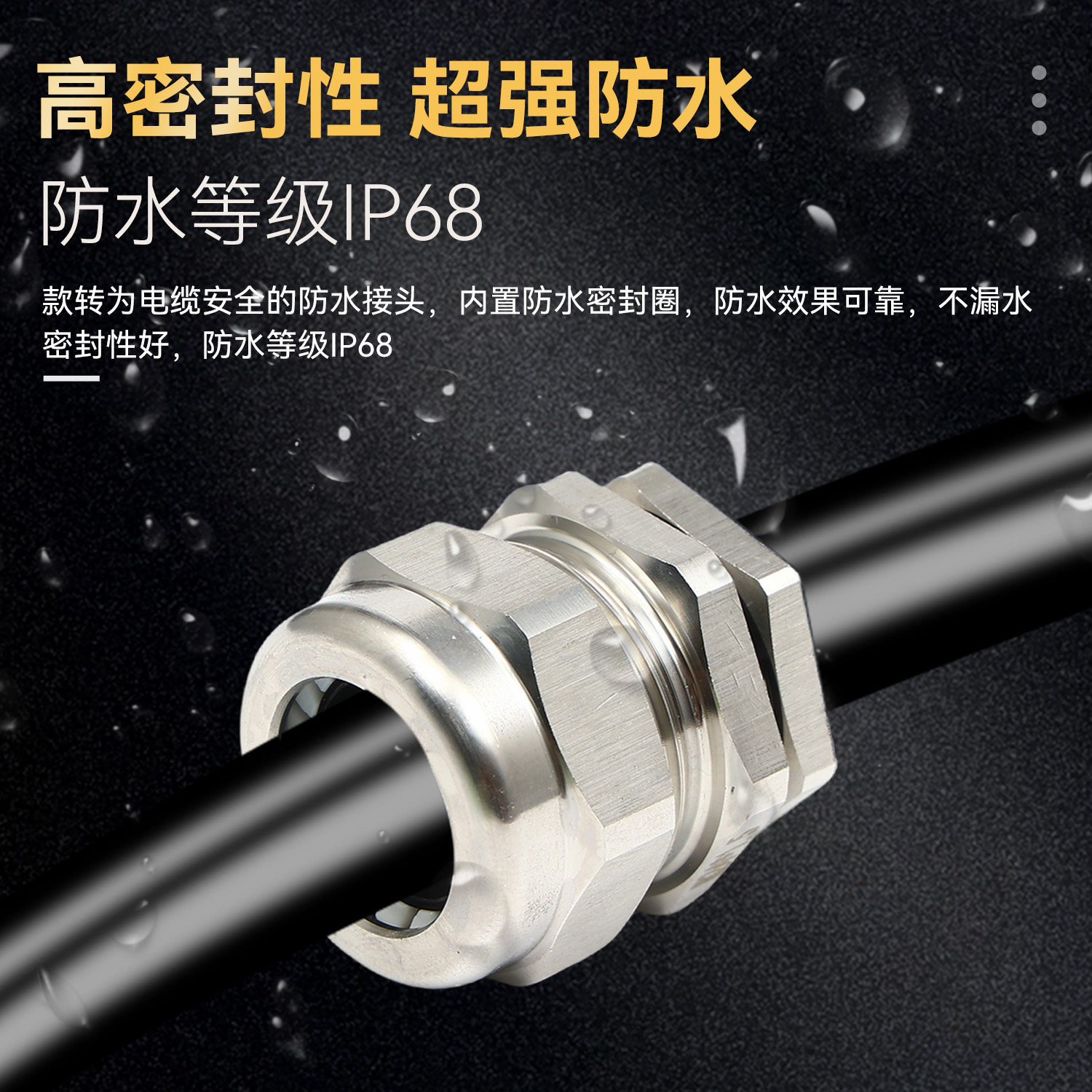304不锈钢防爆格兰头防水接头金属电缆线夹紧连接器密封填料函M20