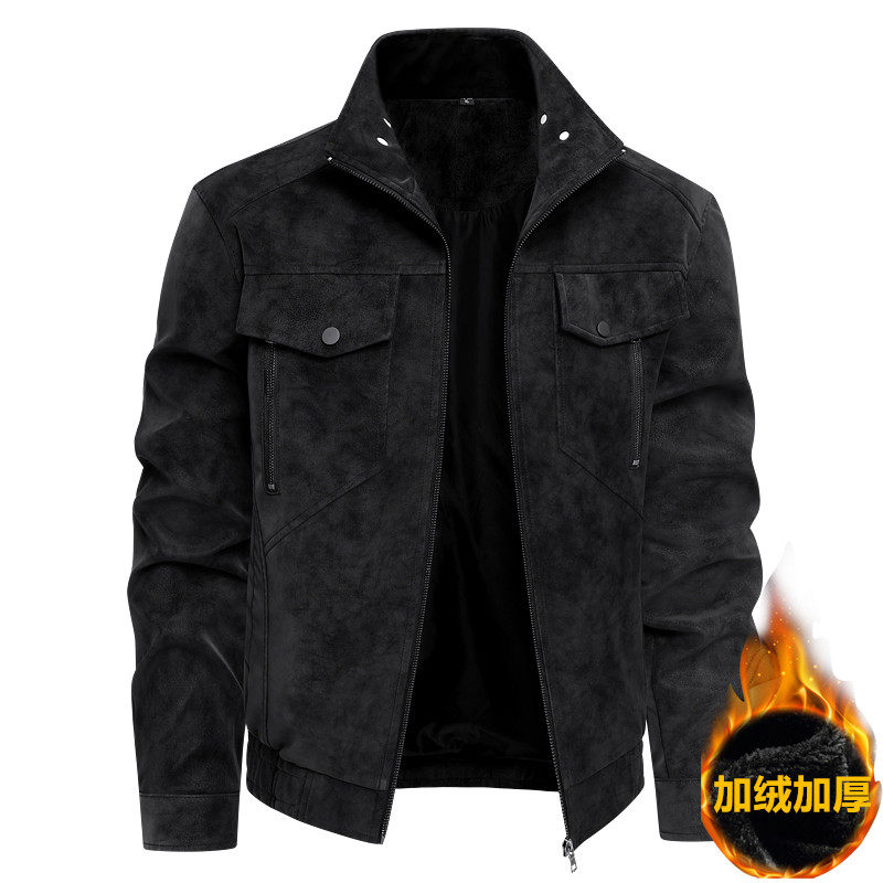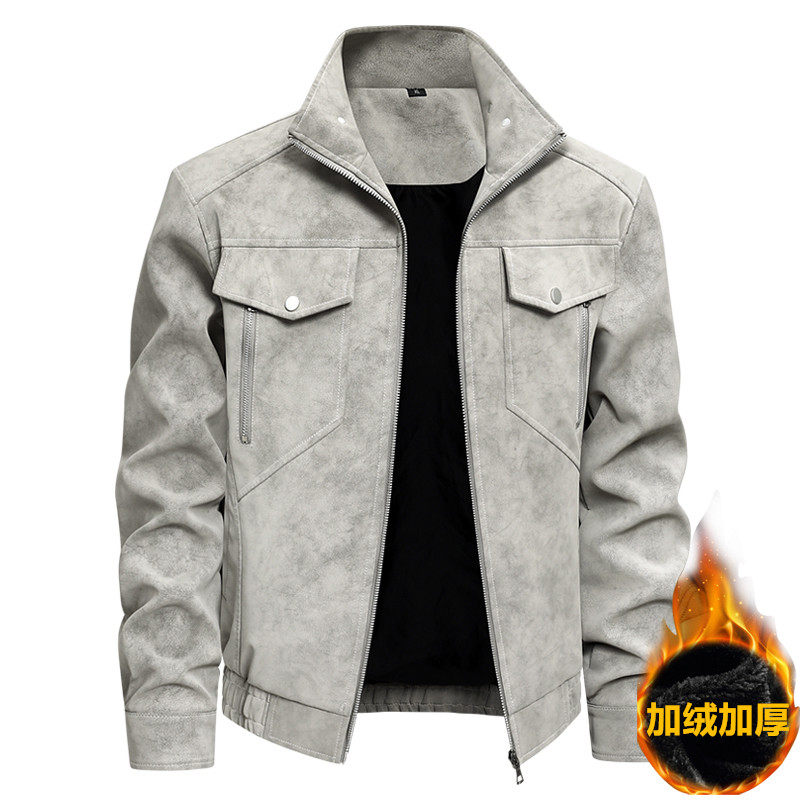 夹克社会人网红外套 修身 经典 百搭立领皮衣加绒加厚潮男秋冬新韩版