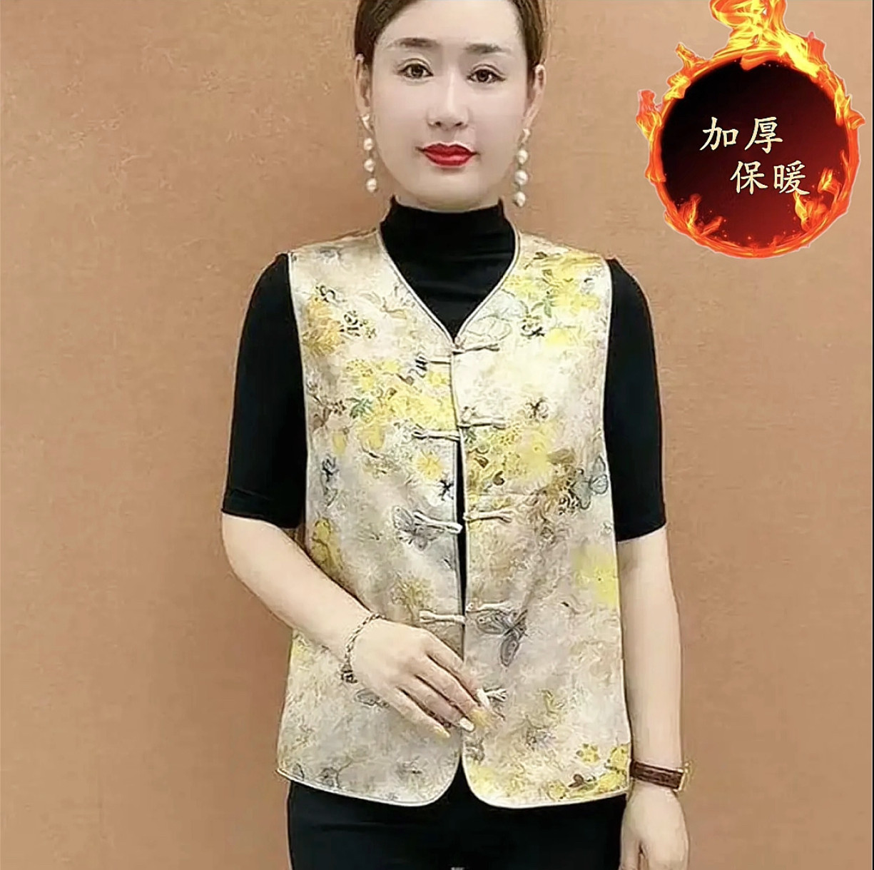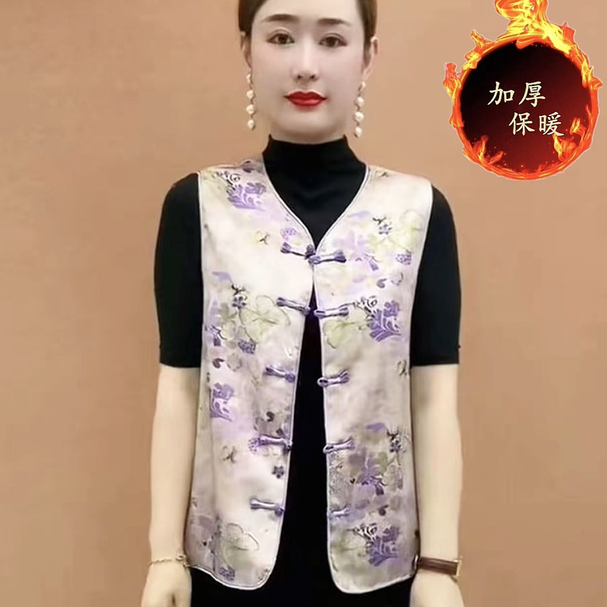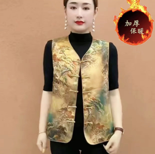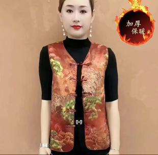 妈妈装 加棉2025秋新复古文艺马甲显瘦中长款 印花碎花马甲遮肚时尚