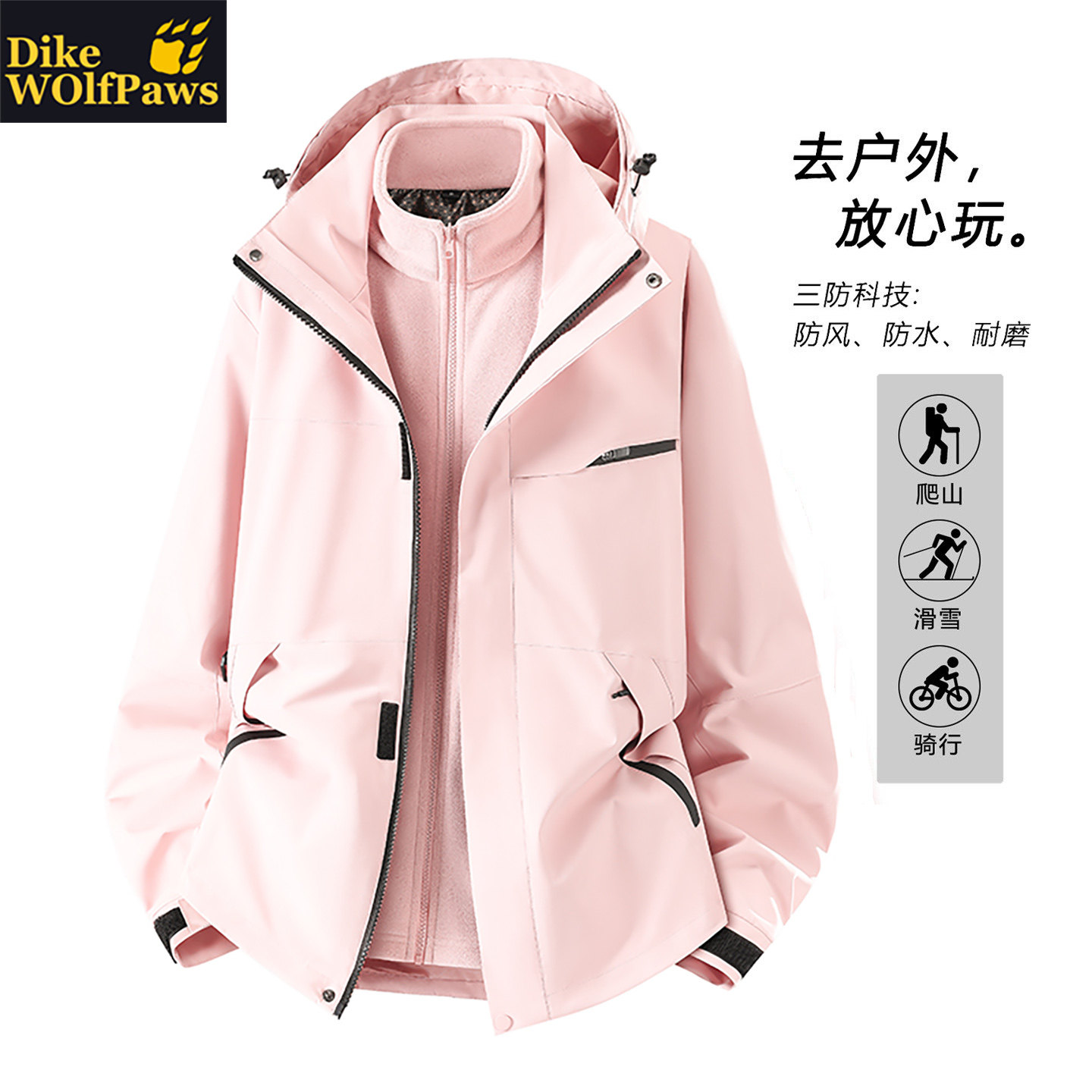 三合一冲锋衣男女秋冬款 可拆卸两件套防水防风户外徒步登山服外套