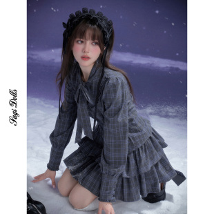 SagiDolls少女斗志 灰蓝格大蝴蝶结蛋糕连衣裙lolita秋 暮色人偶