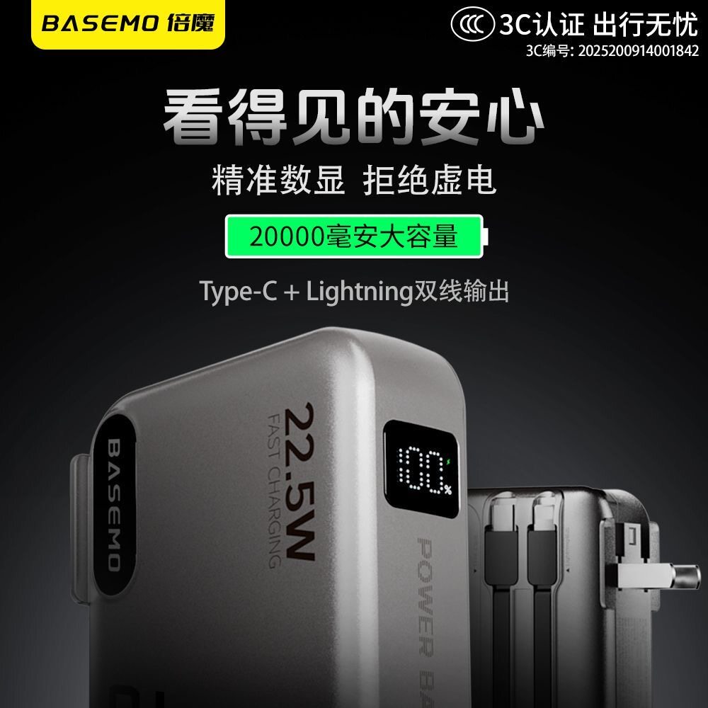倍魔充电宝2万1万移动电源超级快充自带线墙插3C认证可上飞机电源
