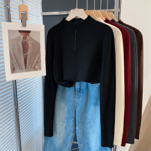 潮 女内搭上衣洋气打底衫 半高领毛衣女套头2025秋冬新款 外穿针织衫