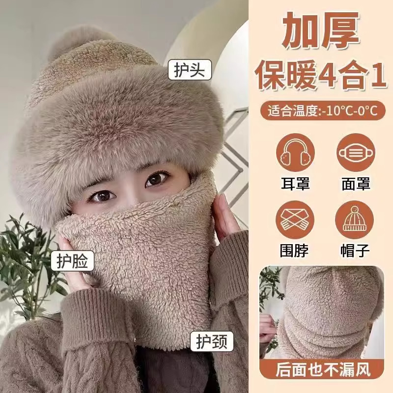 冬天帽子包围防风防寒女骑车户外加绒加厚围脖口罩一体保暖包头帽