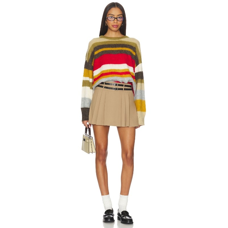 性感风百褶裙REVOLVE小众新款 superdown 半身裙复古灰褐色美式