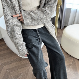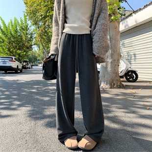 醋酸羊毛阔腿裤 黑灰色糯米裤 女秋冬高腰显瘦垂感加绒弯刀运动卫裤