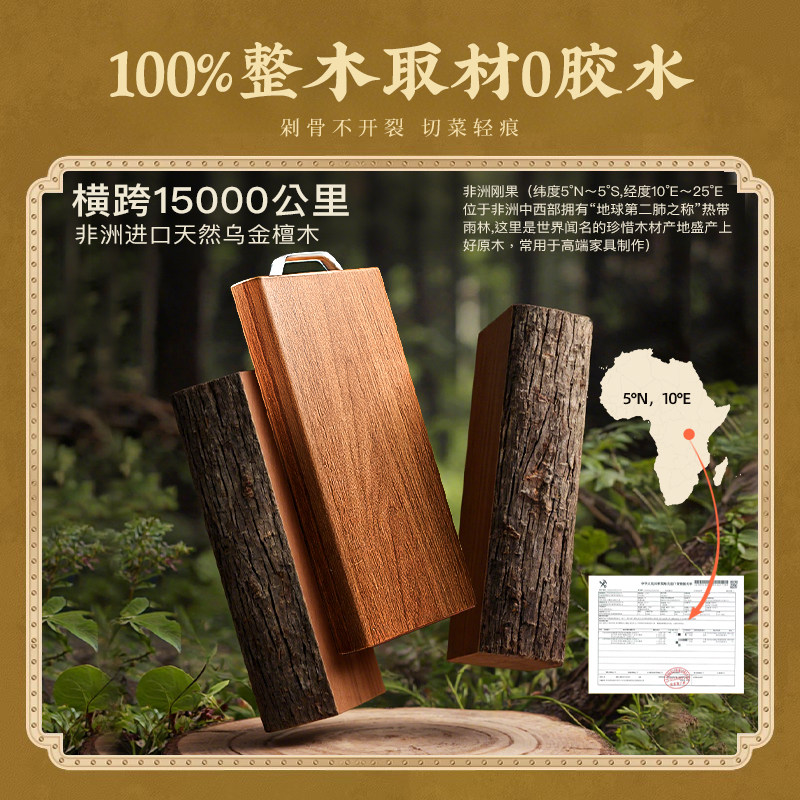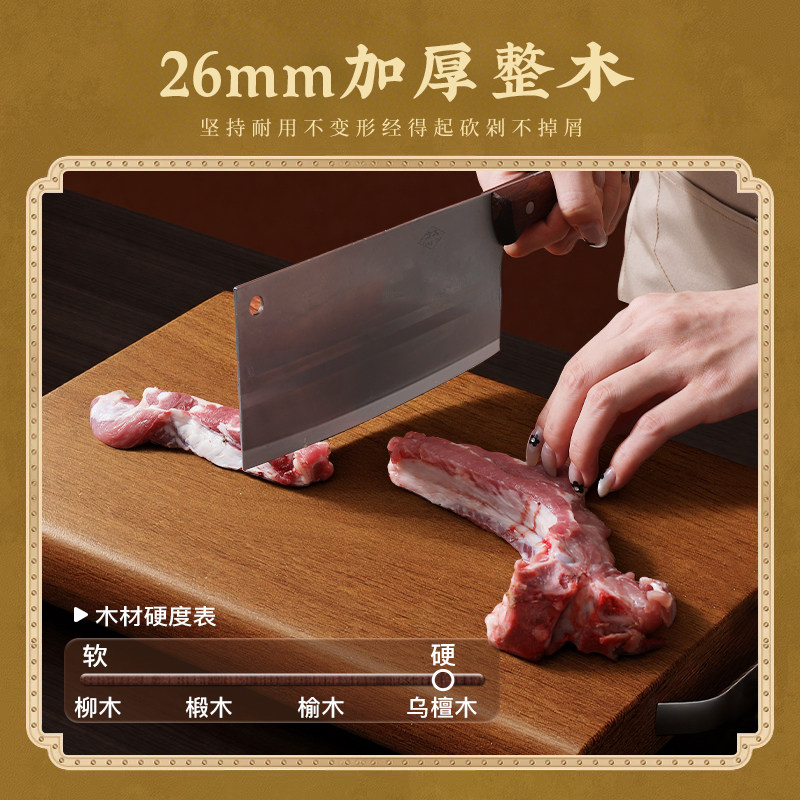 好管家乌檀木菜板抗菌防霉家用砧板占粘防裂黑金檀实木案板切菜板
