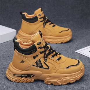 踢不烂厚底高帮棉鞋 回力加绒情侣马丁靴冬季 英伦大黄靴子男女同款