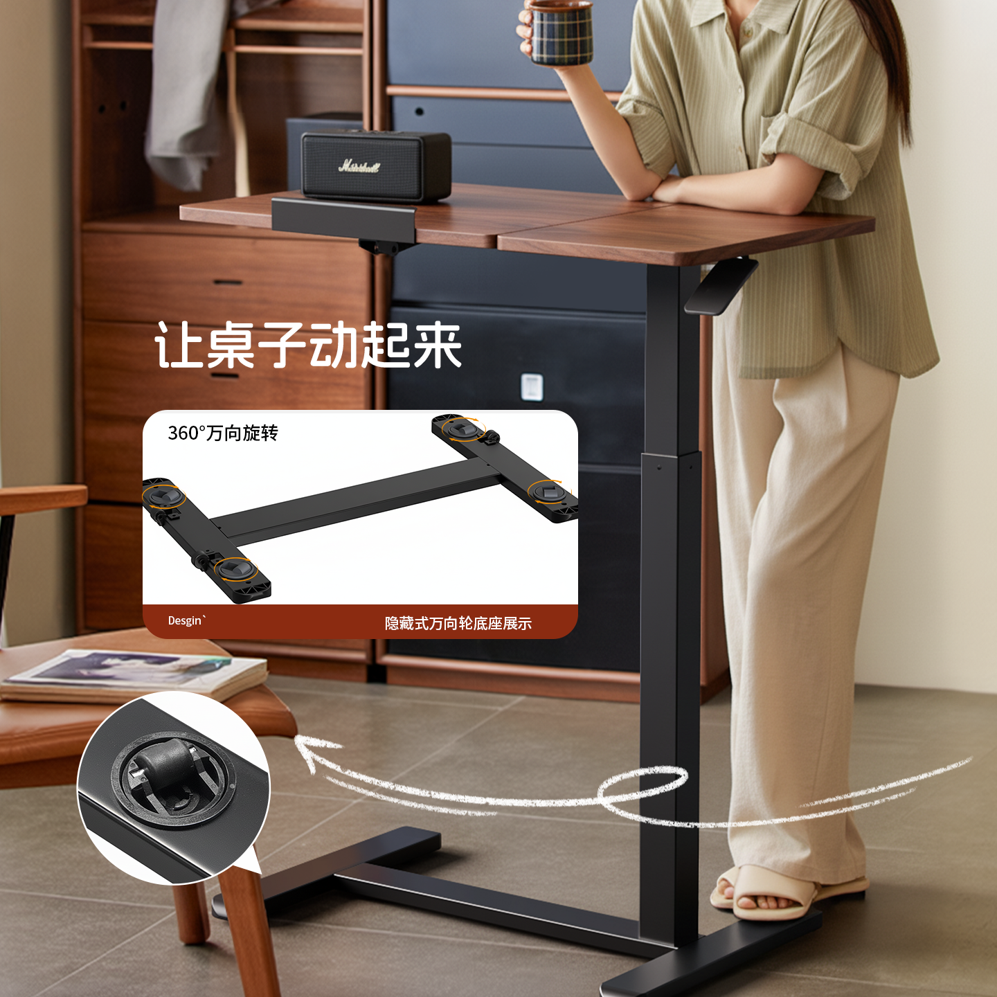 林氏家居办公桌床边桌子书桌成人家用可移动升降桌电脑桌林氏木业