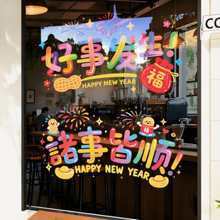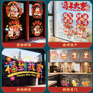 新年玻璃门贴纸2026春节装 饰静电贴商场店铺橱窗墙贴过年窗户年画