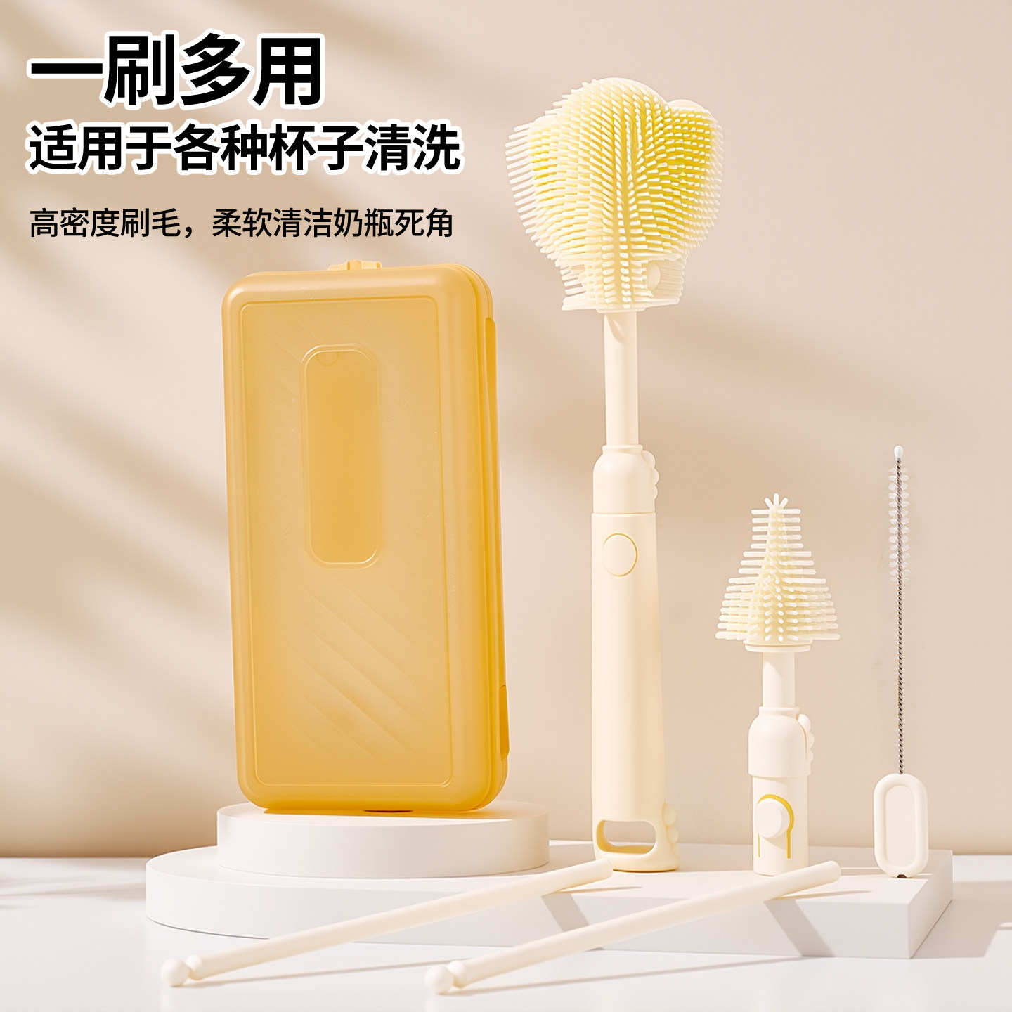 便携硅胶奶瓶刷套装 婴儿洗奶瓶刷子宝宝专用奶嘴吸管刷沥干架杯刷