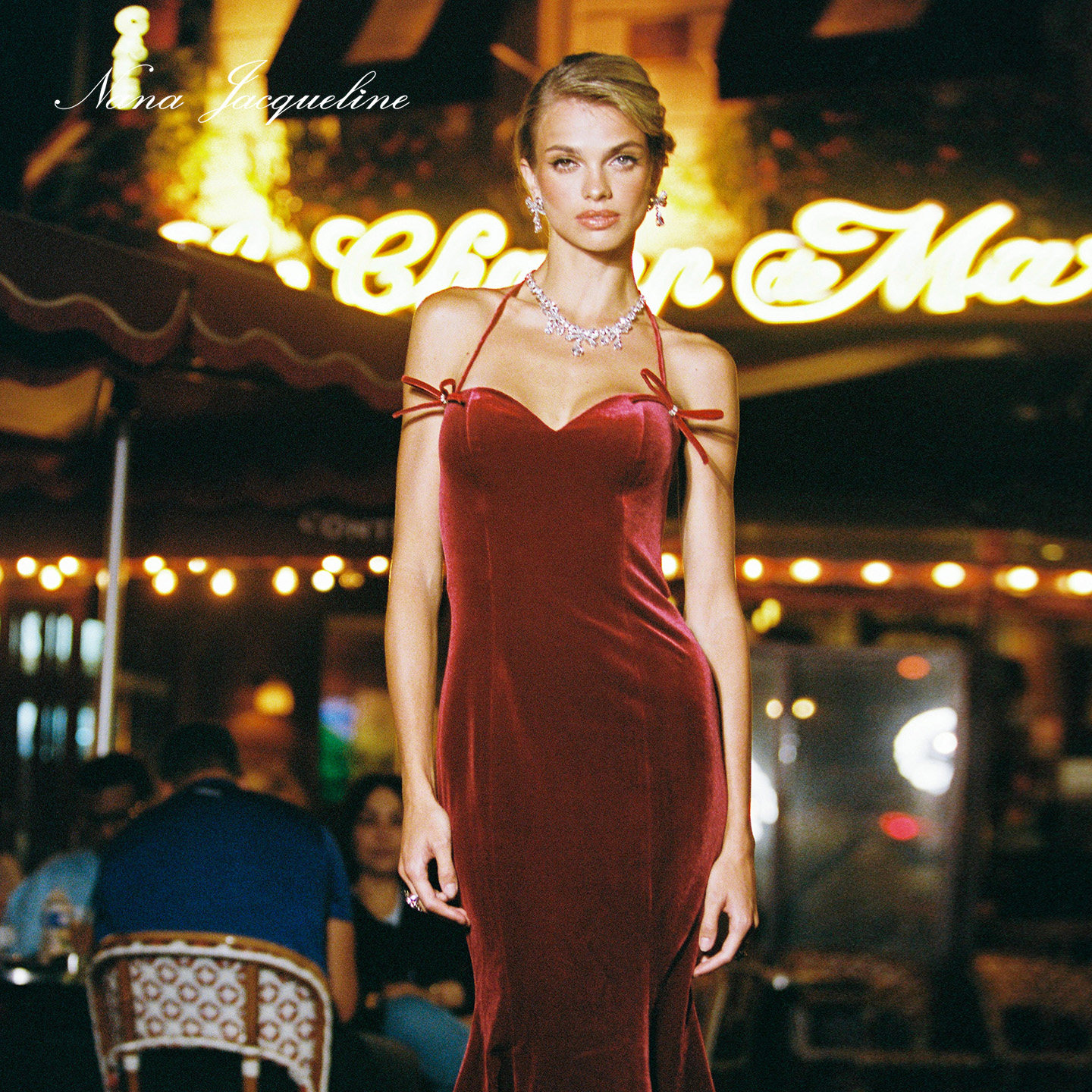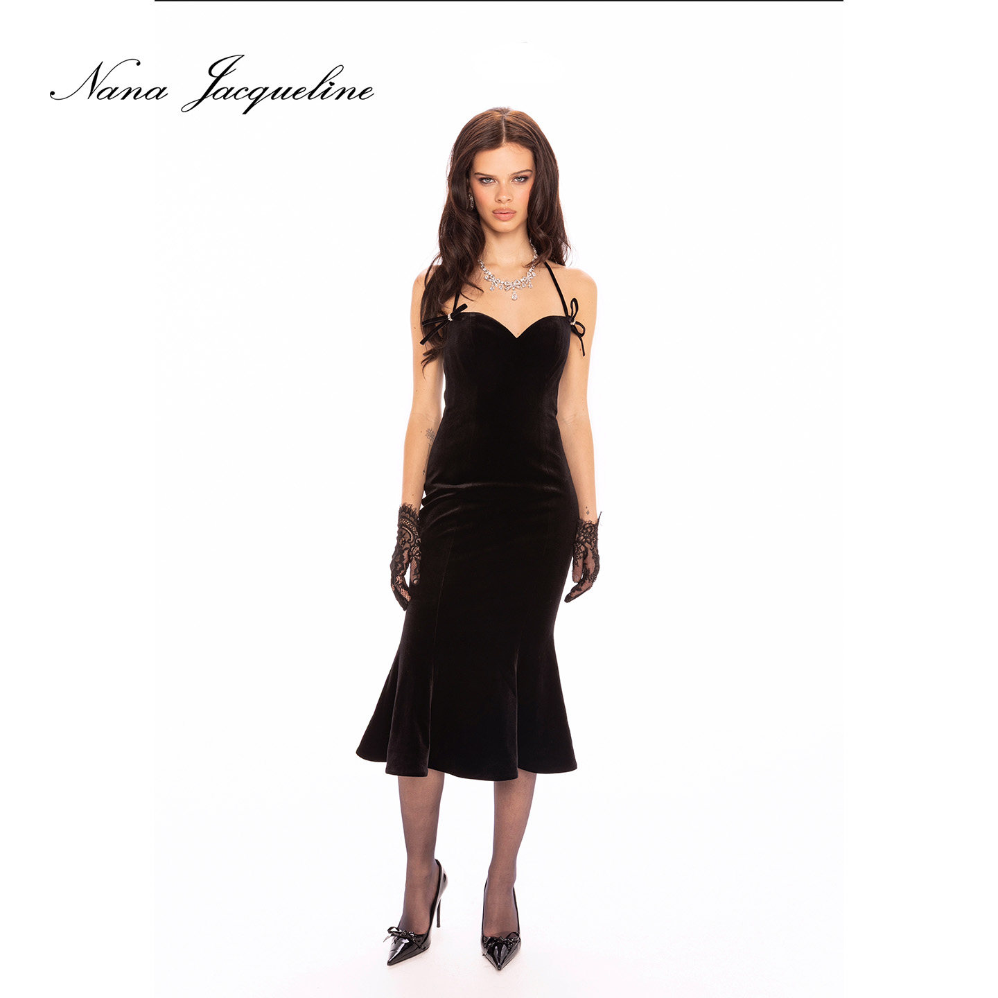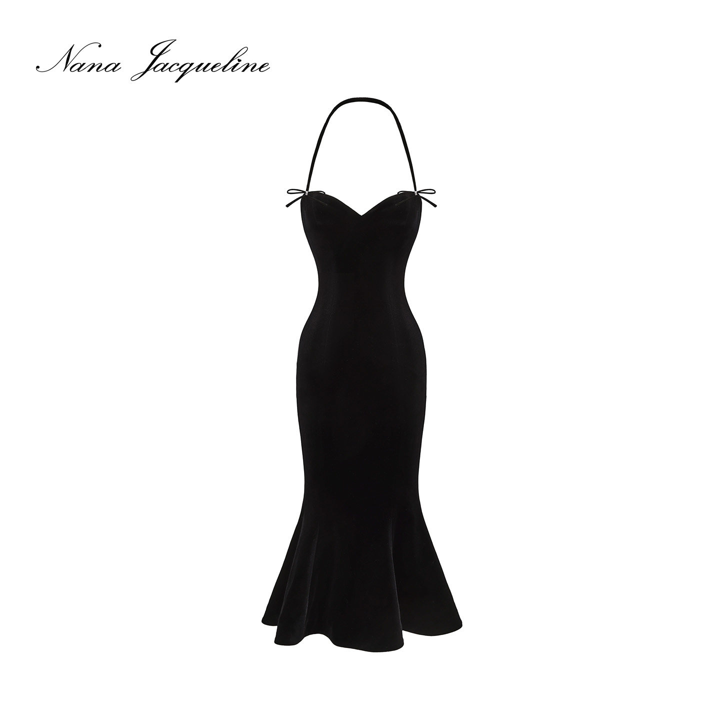 NanaJacqueline丝绒蝴蝶结鱼尾连衣裙女高级感晚宴小礼服千金晚宴