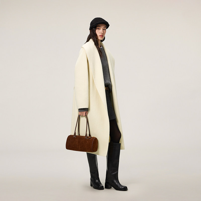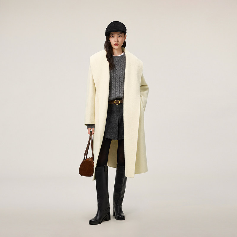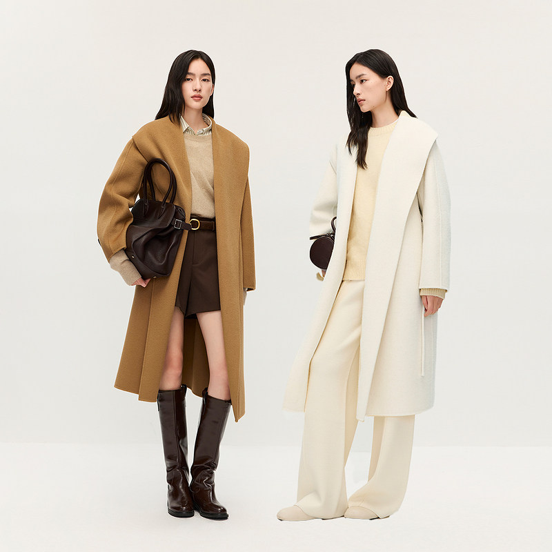 新品 大衣外套腰带2025秋季 100%羊毛双面呢翻领袍式 OCHIRLY欧时力