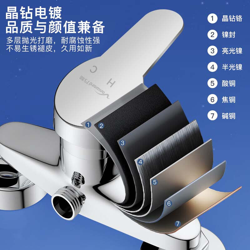 万和淋浴水龙头混水阀套装 花洒卫生间淋浴器开关 全铜冷热混水暗装