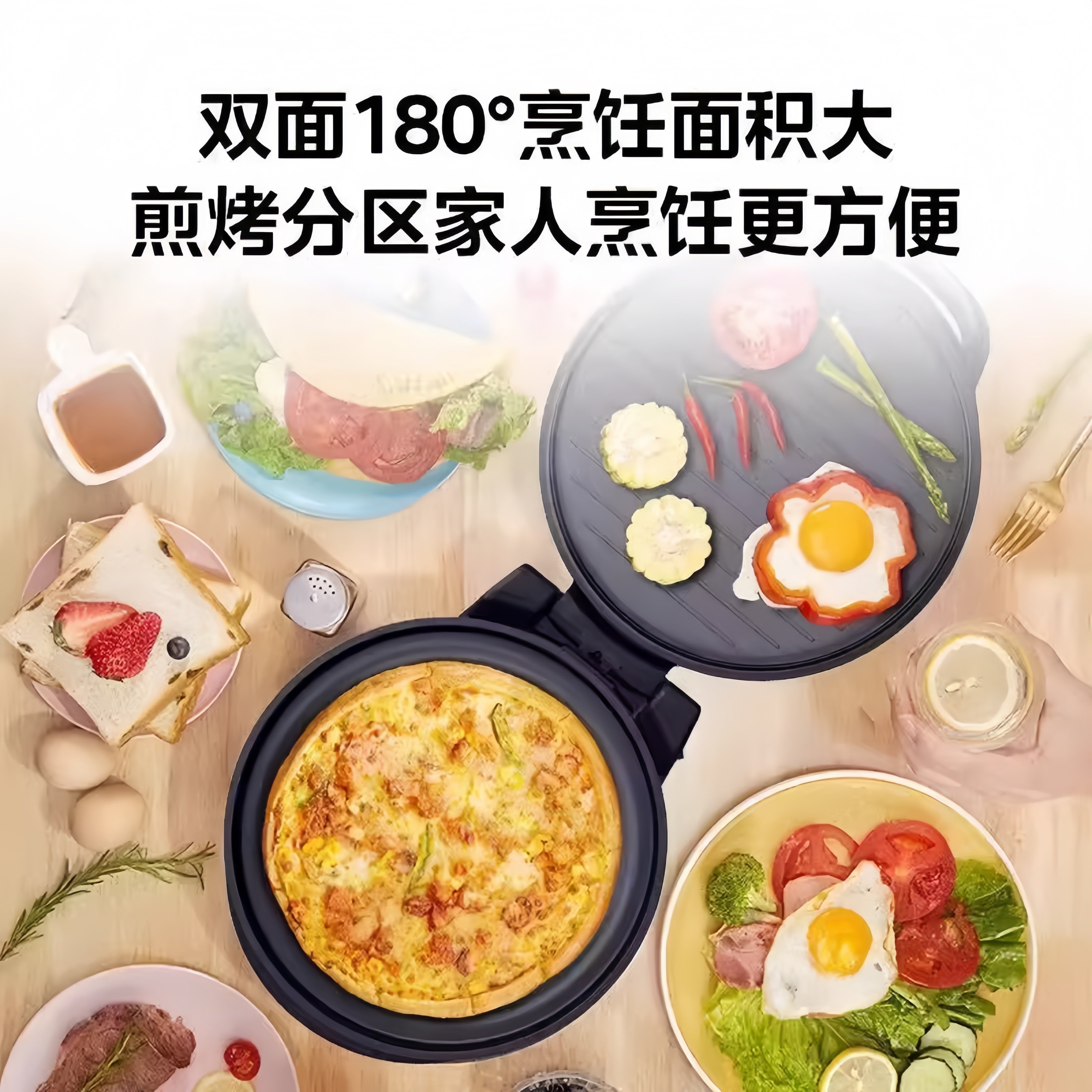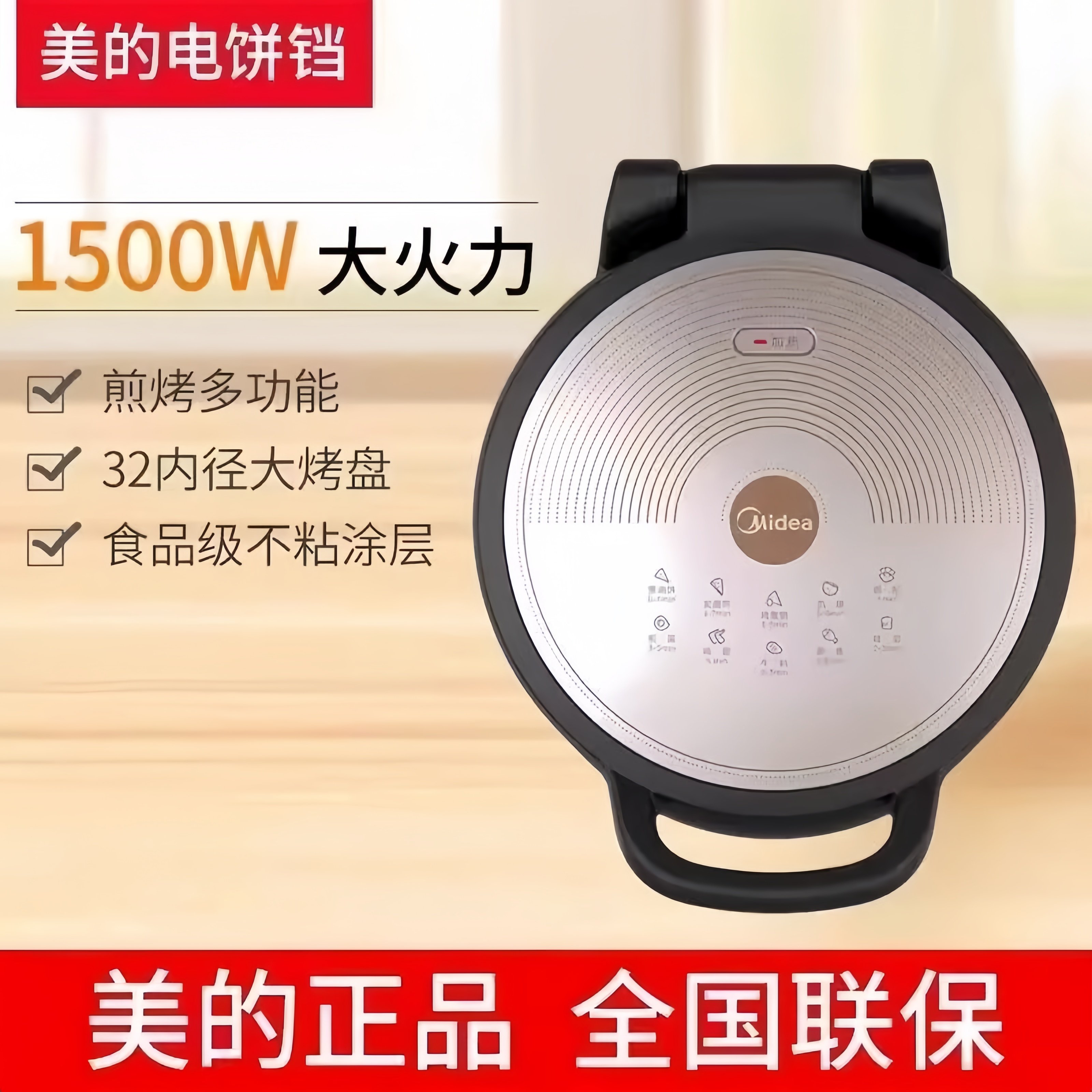 美 电饼铛家用1500W大功率电煎锅双面加热烙饼机多功能煎薄饼机