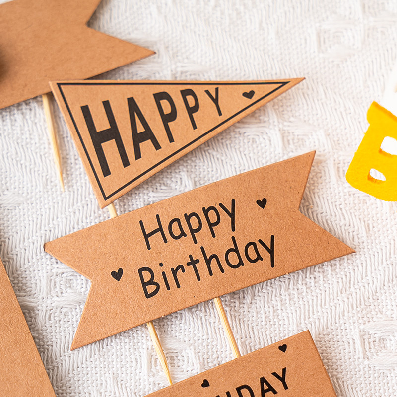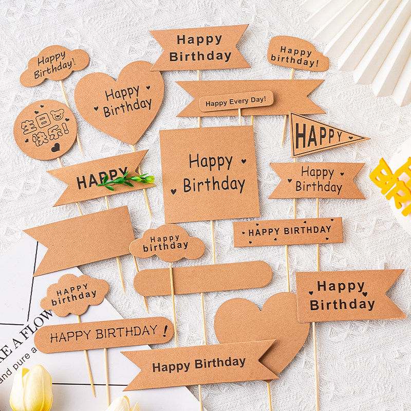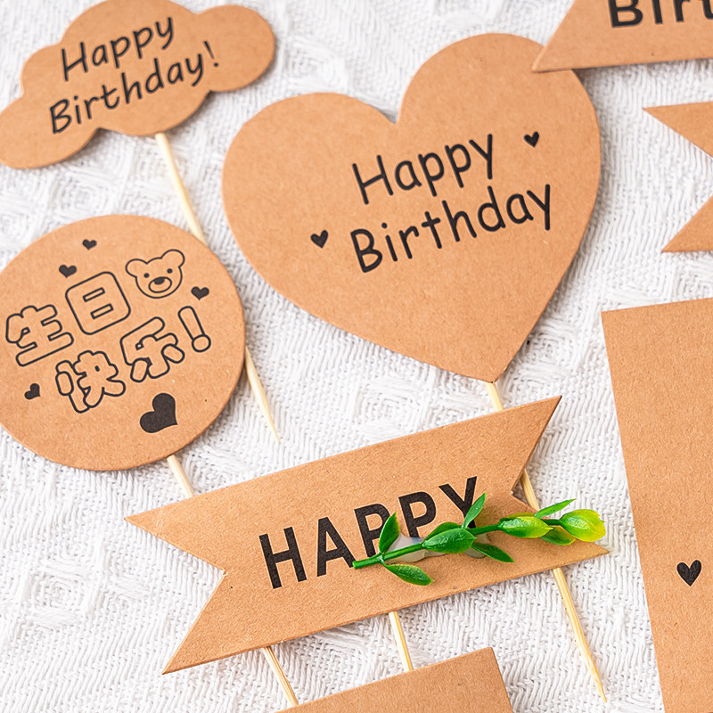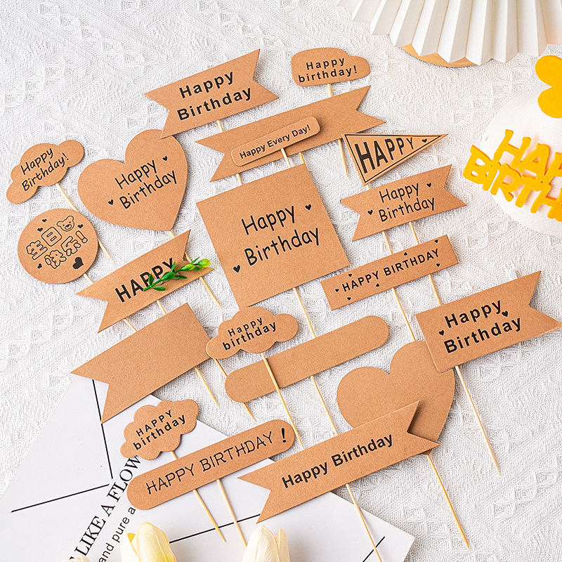 网红牛皮纸森系蛋糕装 饰可写字插牌爱心三角牛皮色插件小清新插旗