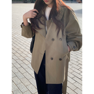 韩系气质小个子短款 Halo 2026新款 卡其色风衣外套女春季 大衣 Luu