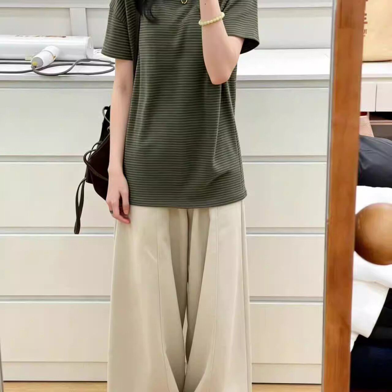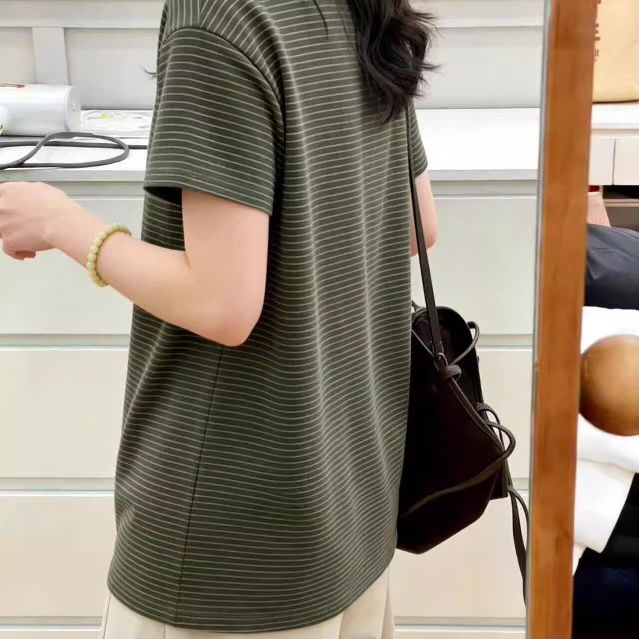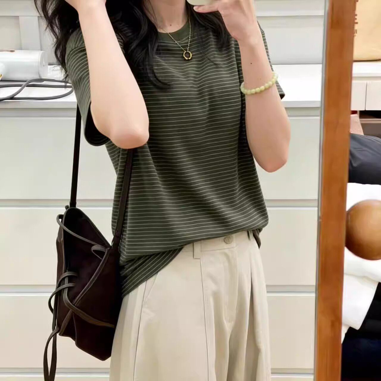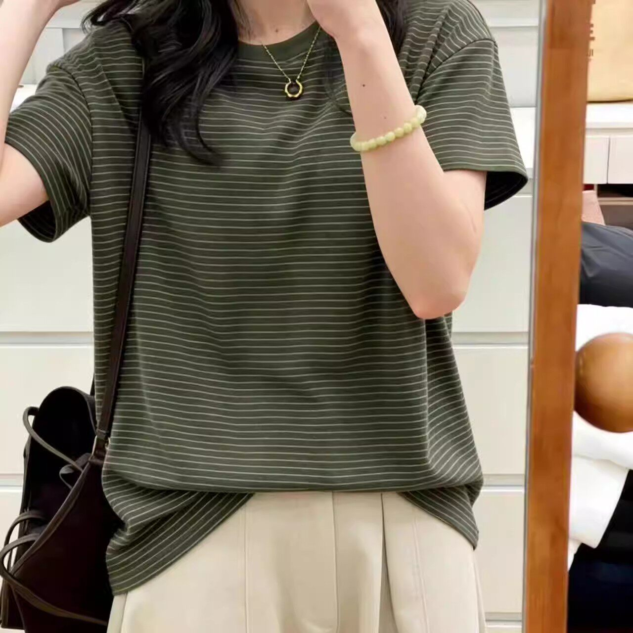 新款 胖MM大码 T恤女夏季 绿色条纹短袖 气质休闲百搭上衣潮 300斤美式