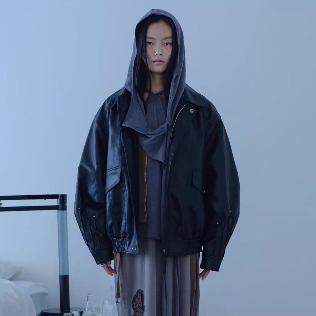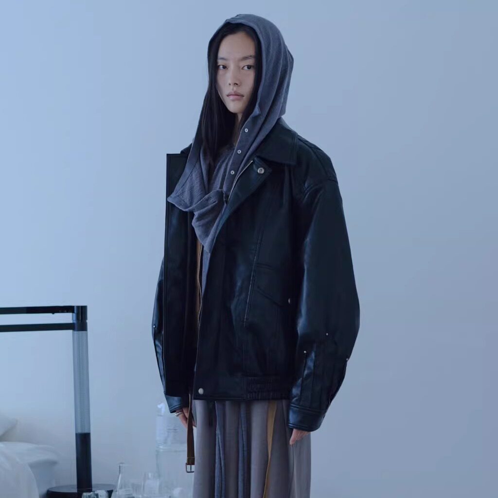 简约褶皱铆钉长袖 百搭立体剪裁时尚 飞行员皮夹克 26春夏 verso