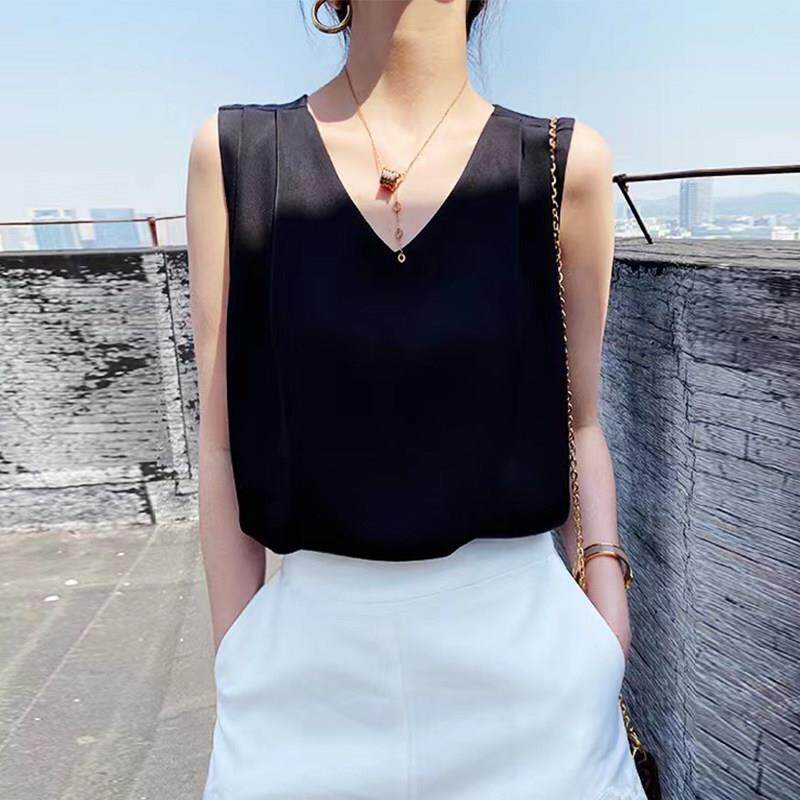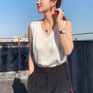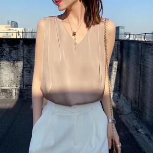 上衣潮0322e 内搭打底衫 背心女夏外穿薄款 V领雪纺宽松三吊带配西装