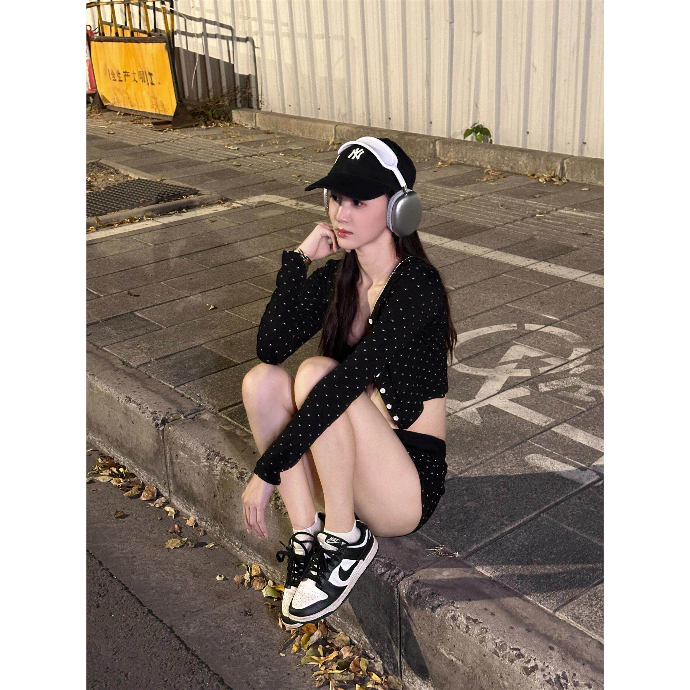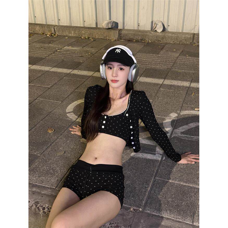 开衫 少女三件套装 超短裤 新款 子纯欲甜酷辣妹2025秋季 猫爪裹胸长袖