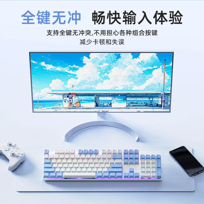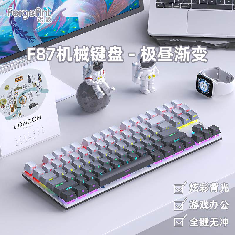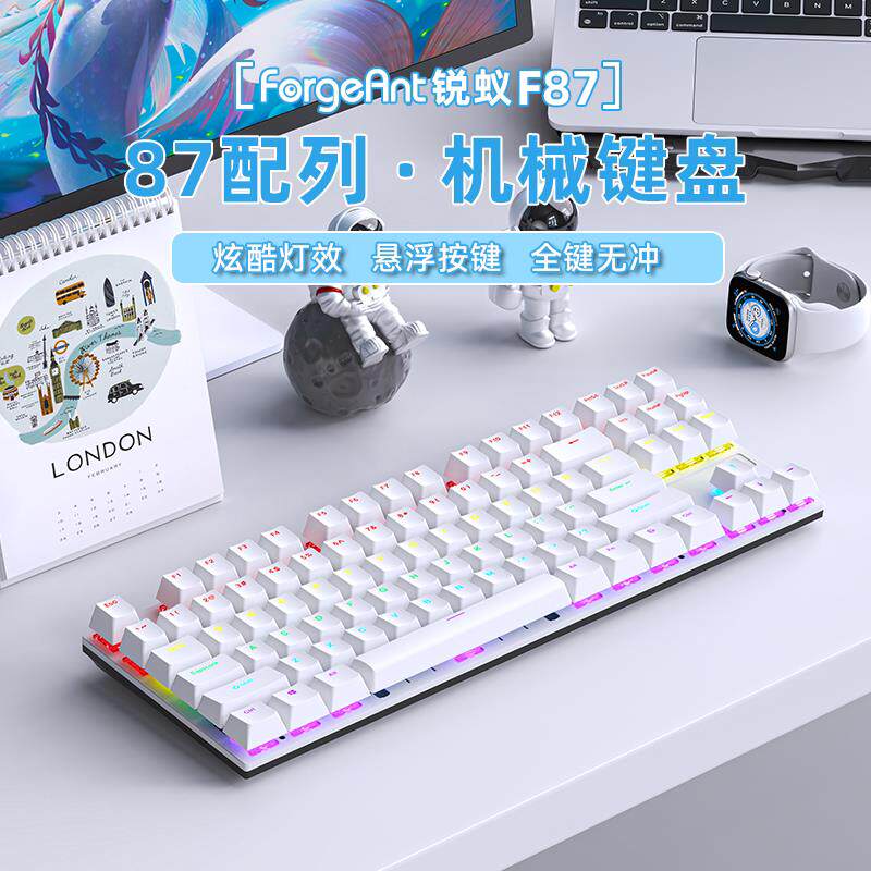 锐蚁F87机械键盘有线 线87键黑莓侧刻高颜值DIY女生办公电竞游戏