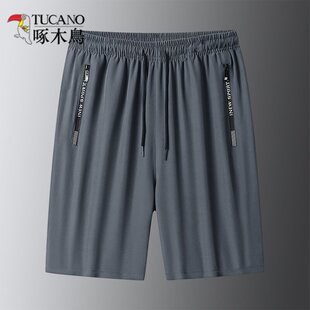 中裤 啄木鸟男夏季 大码 运动休闲跑步宽松速干沙滩裤 外穿 冰丝五分裤