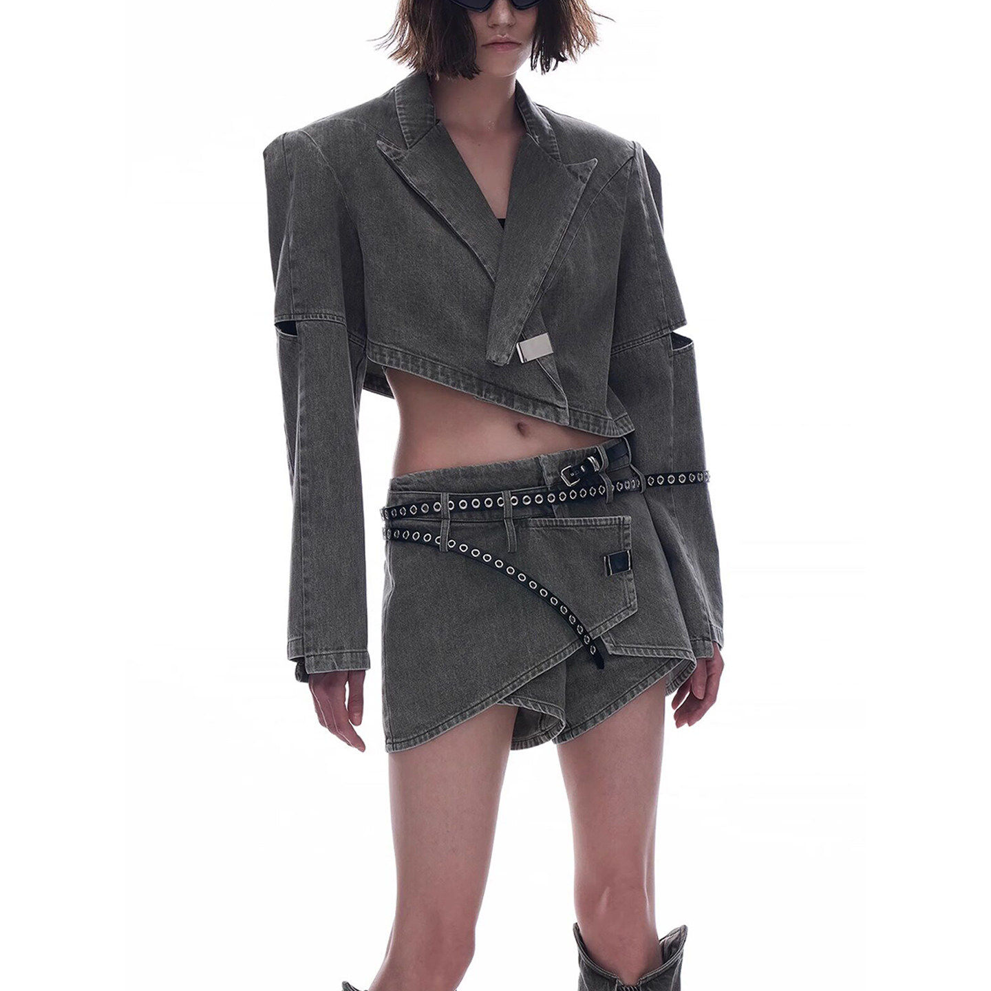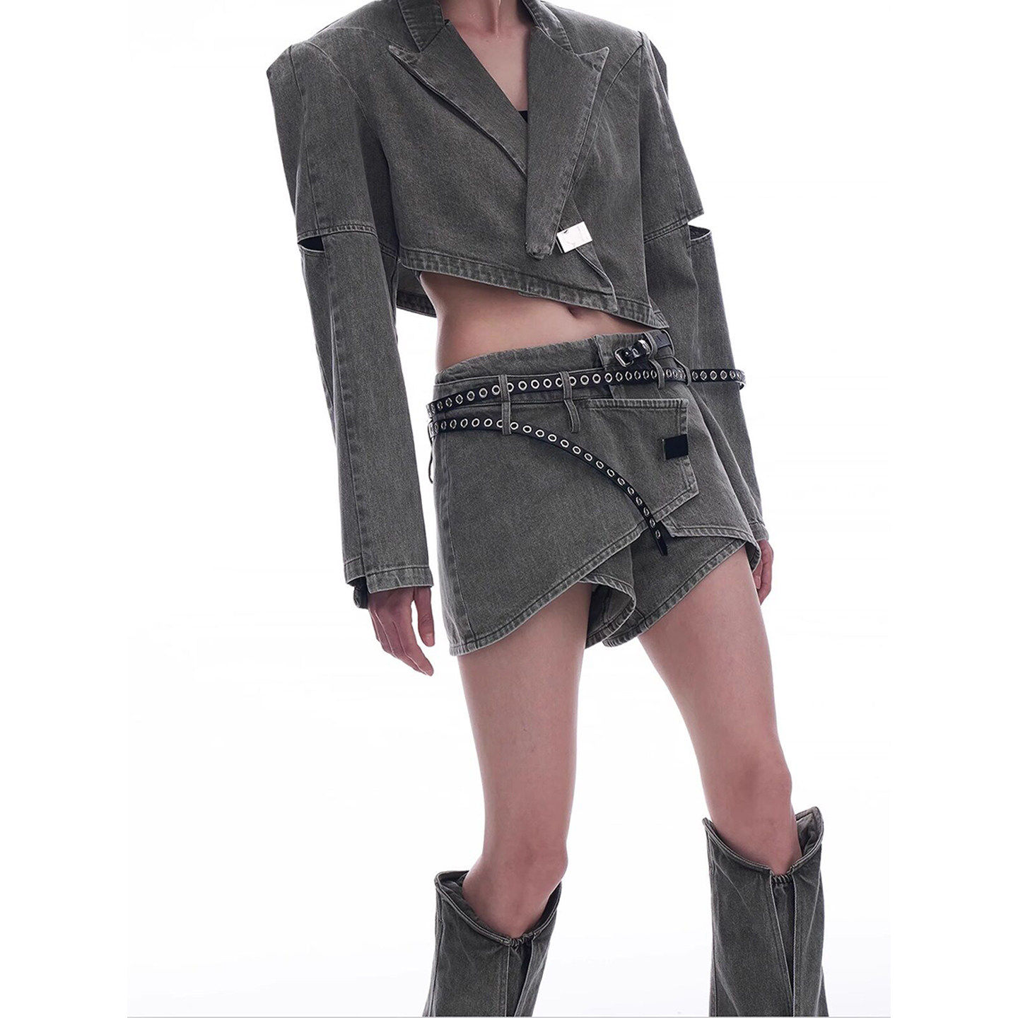 长袖 西装 上衣短裙韩版 女短款 外套半身裙两件套 牛仔套装 2026年夏季