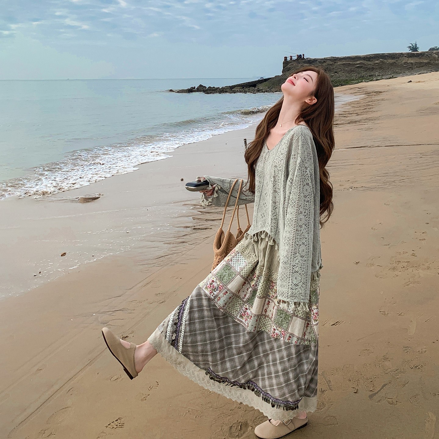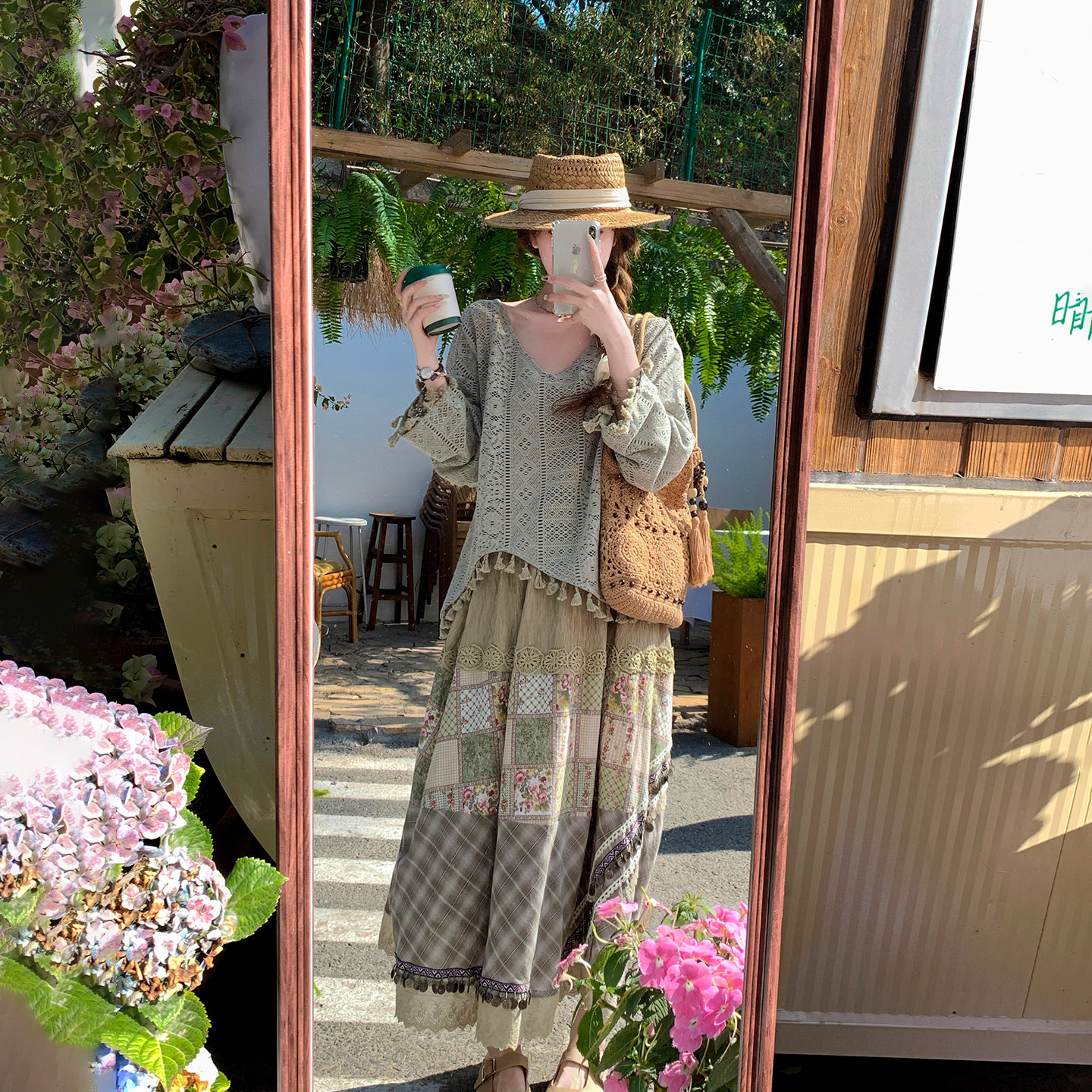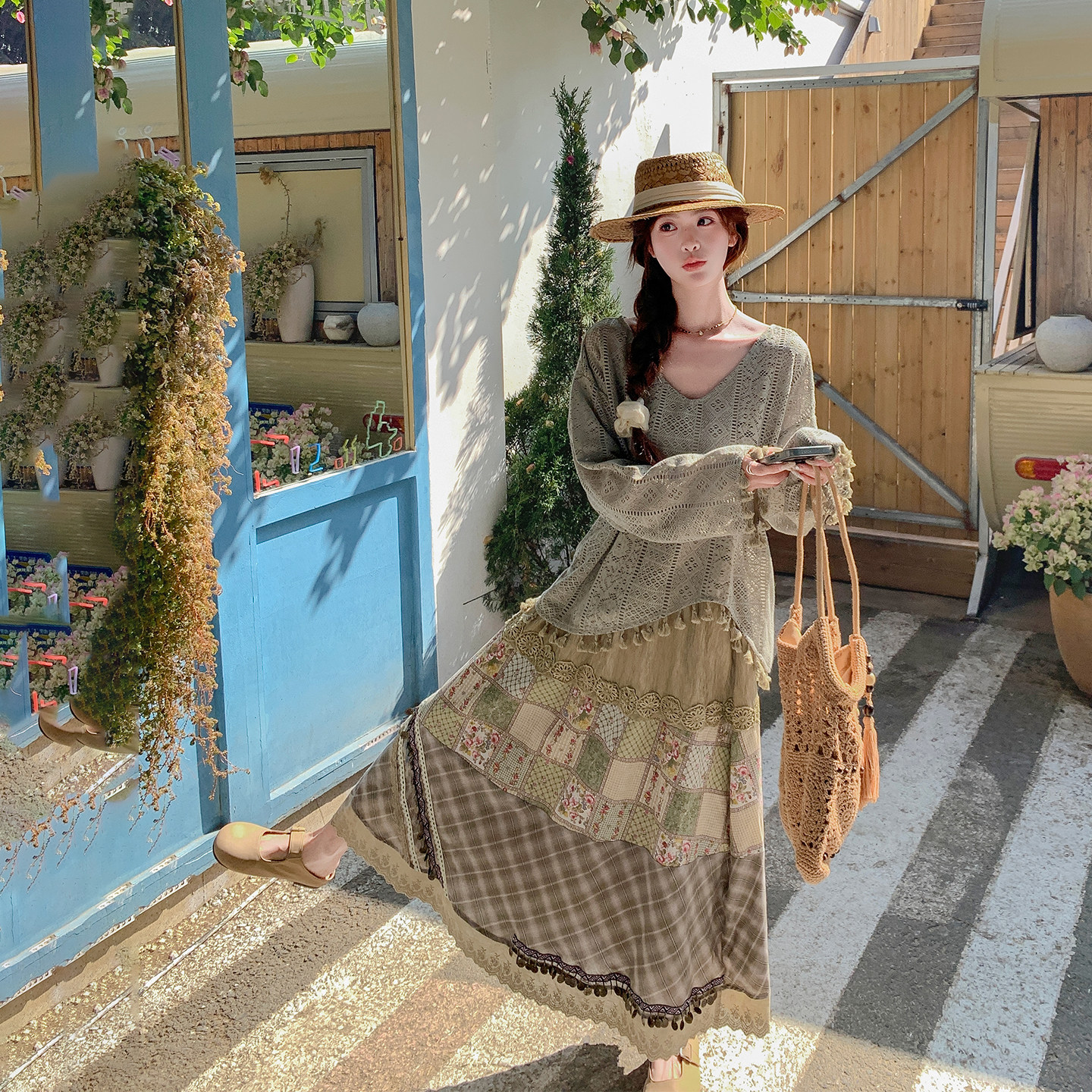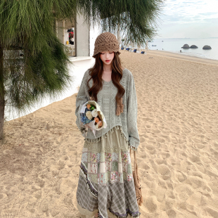 2026新款 女春季 绝美超火碎花半身裙两件套 套装 波西米亚流苏针织衫