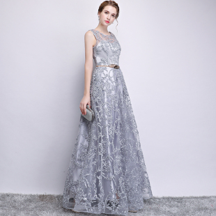 长款 显瘦连衣裙晚装 主持人礼服女 端庄大气修身 宴会晚礼服2021新款