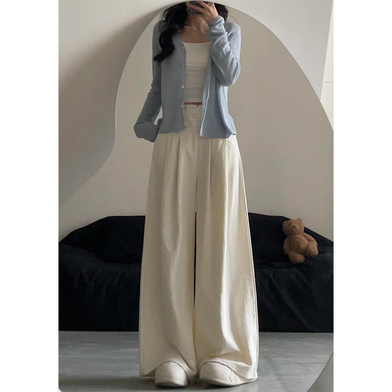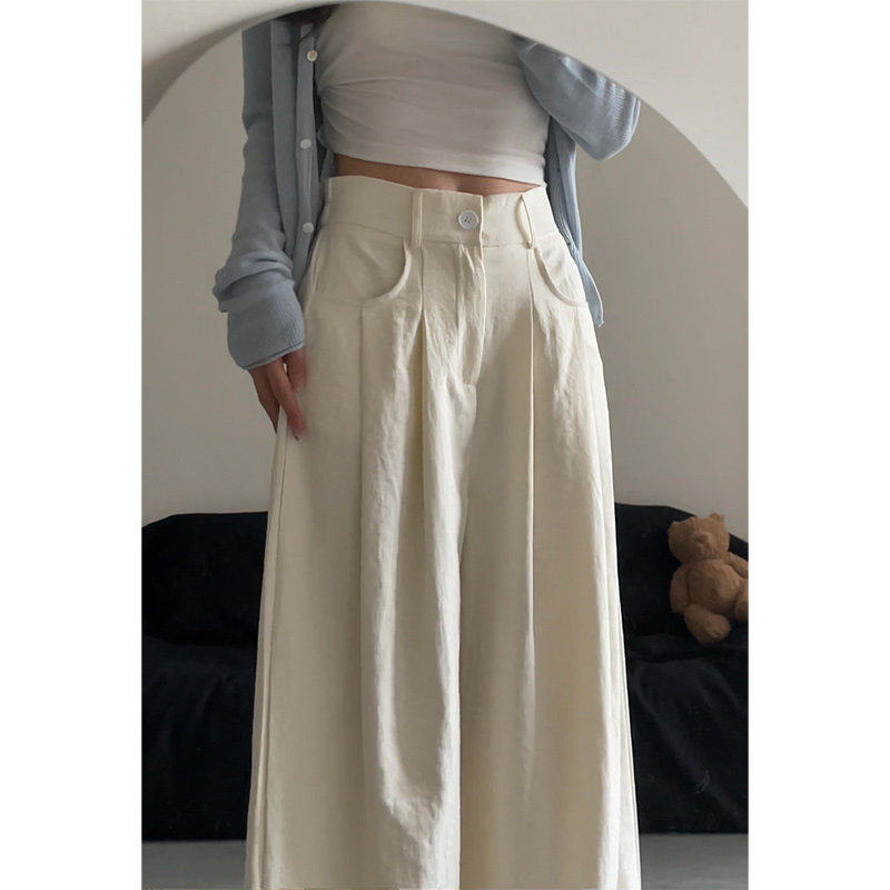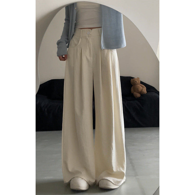 女夏季 裤 薄2025新款 慵懒山本西装 高腰垂感小个子直筒裤 白色宽裤
