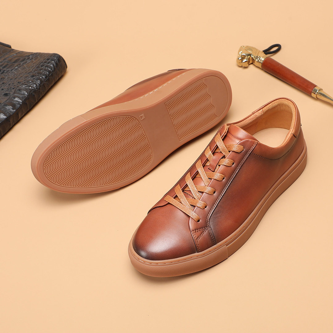 头层牛皮手工系带英伦复古商务德迅鞋 男式 橡胶软底板鞋 2026春新款