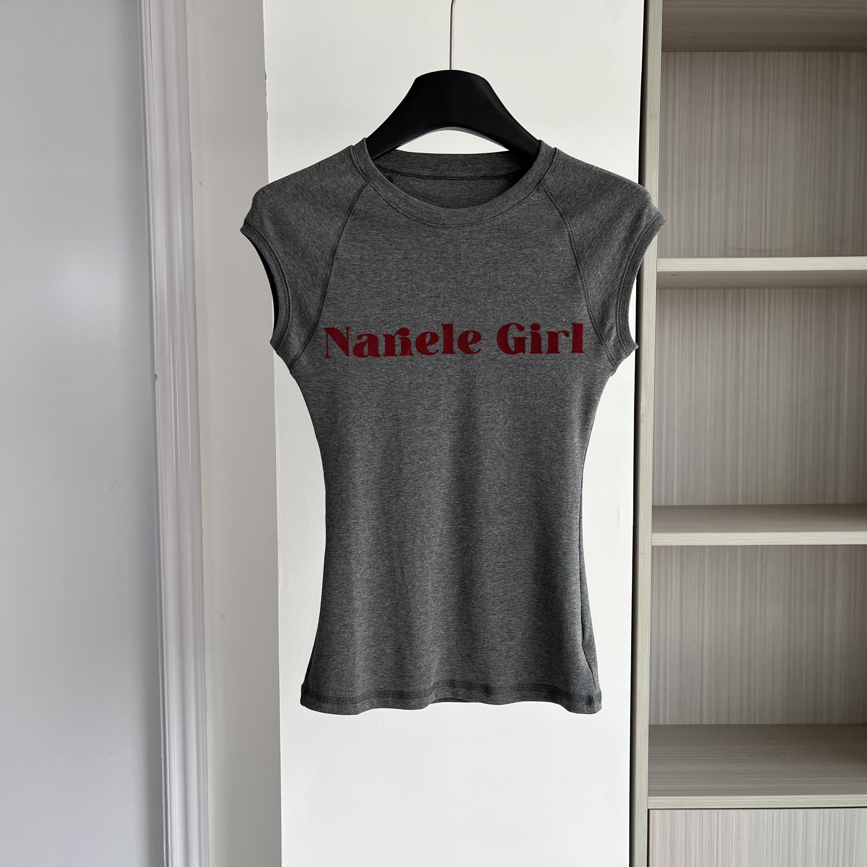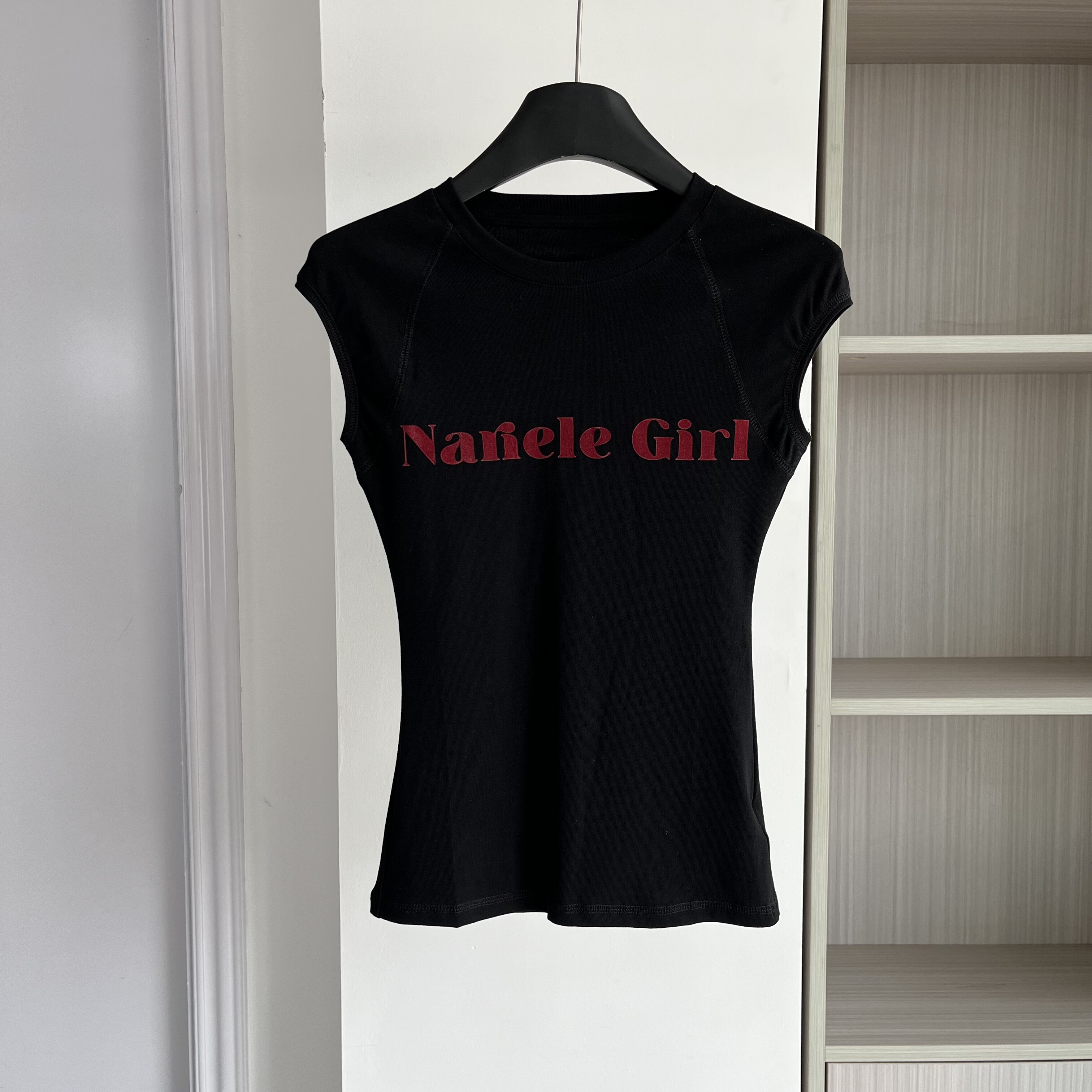 T恤女修身 复古辣妹风字母印花无袖 显瘦圆领上衣 美式 2026新款