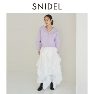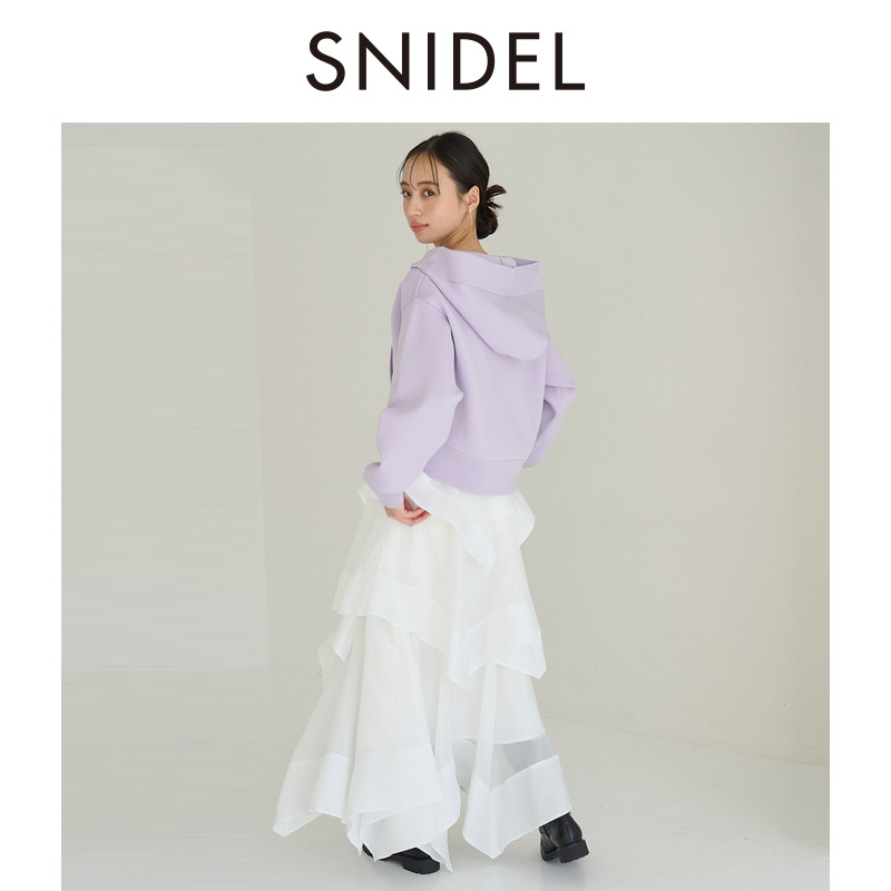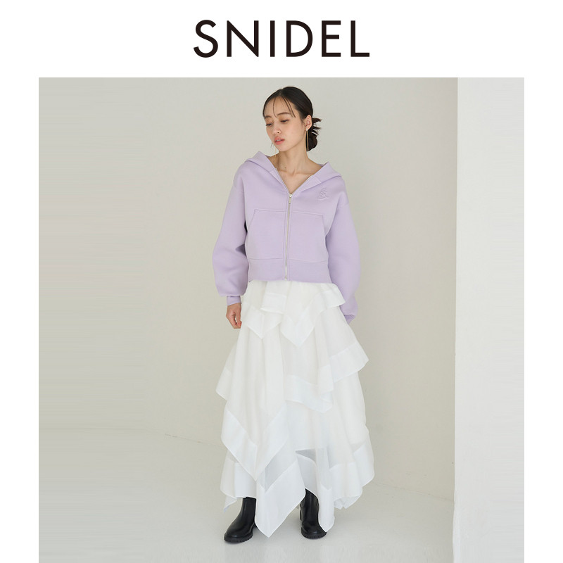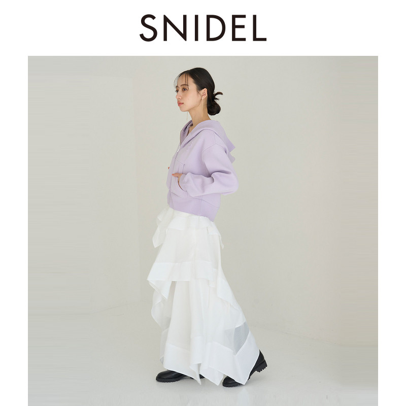 SNIDEL2026春夏新品 优雅百搭高腰纯色荷叶边蛋糕半身裙SWFS261119