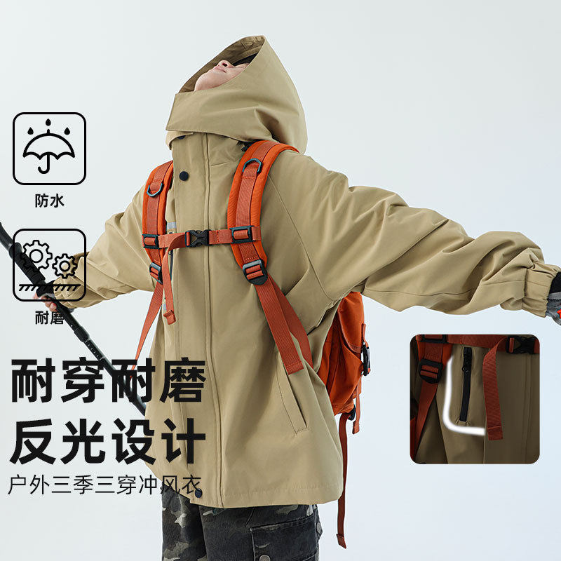 骆驼儿童冲锋衣三合一可拆卸大童户外防水风衣男童女童外套滑雪服