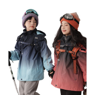 小骆驼儿童冲锋衣三合一防风防水户外加绒滑雪服男女童登山服外套