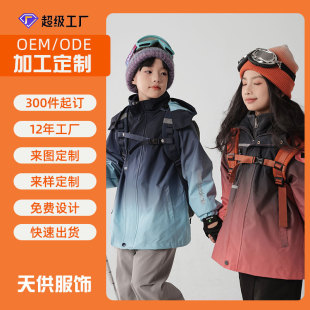 滑雪服套装 外贸原单秋冬宝宝连帽防风防水冲锋衣外套长裤 套装