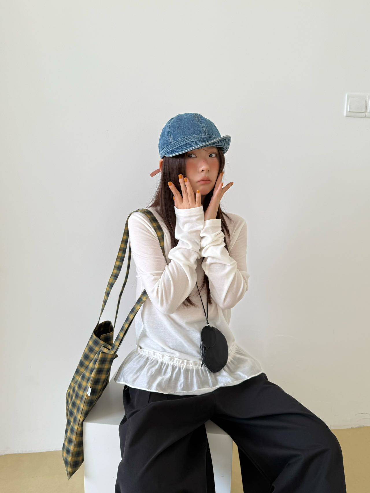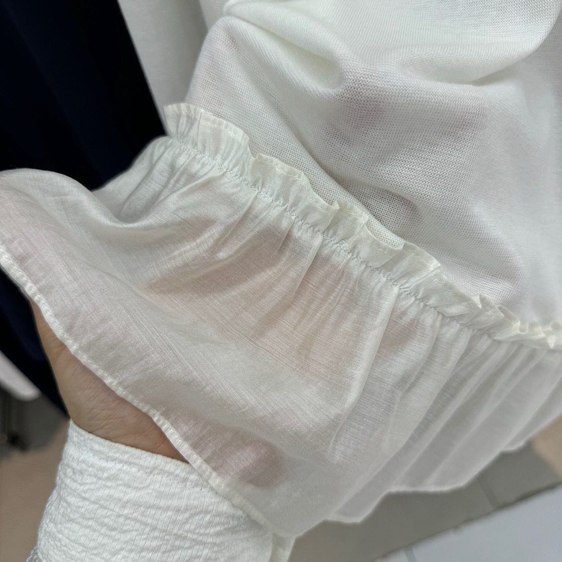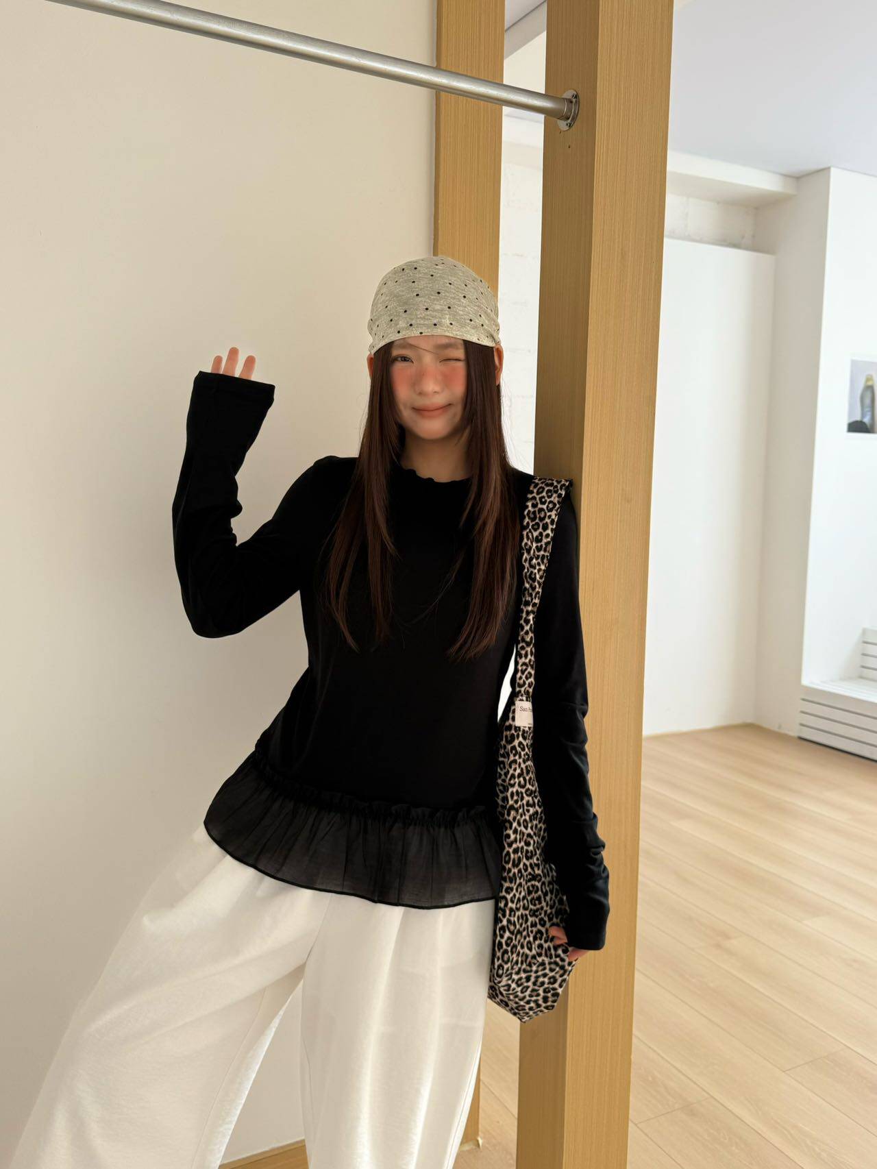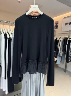 T恤女ins小众打底上衣 韩系拼接网纱荷叶边设计感长袖 UPONE 自留款