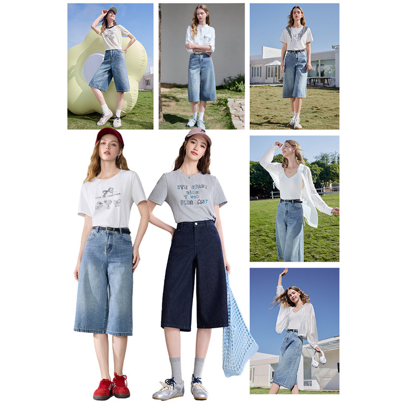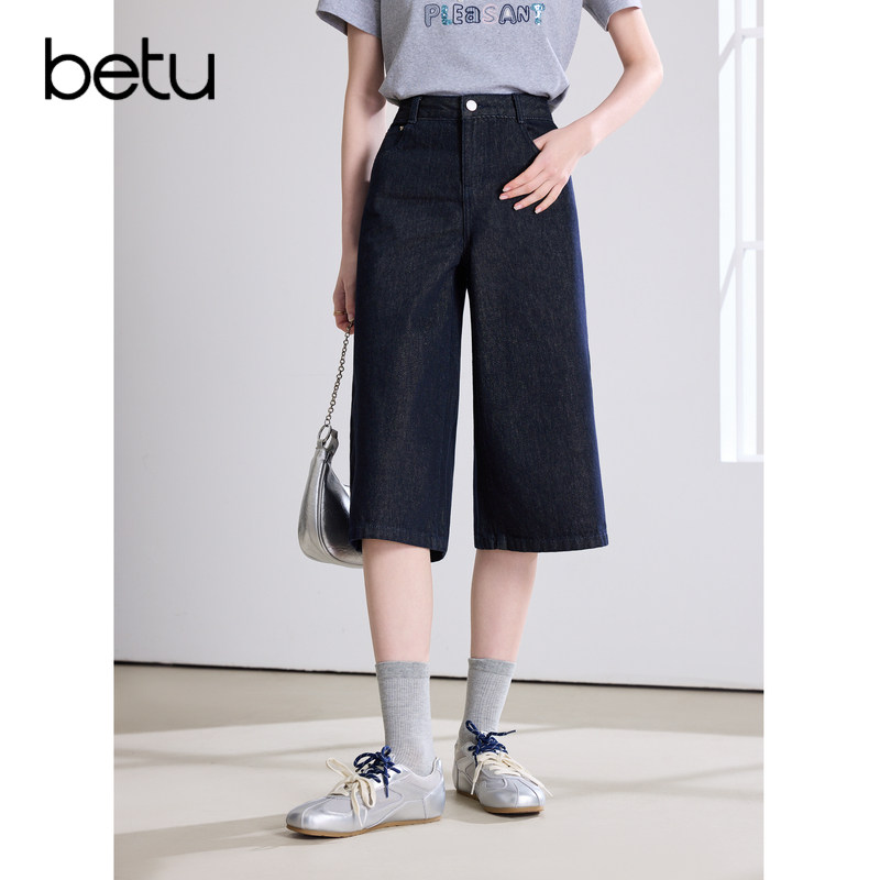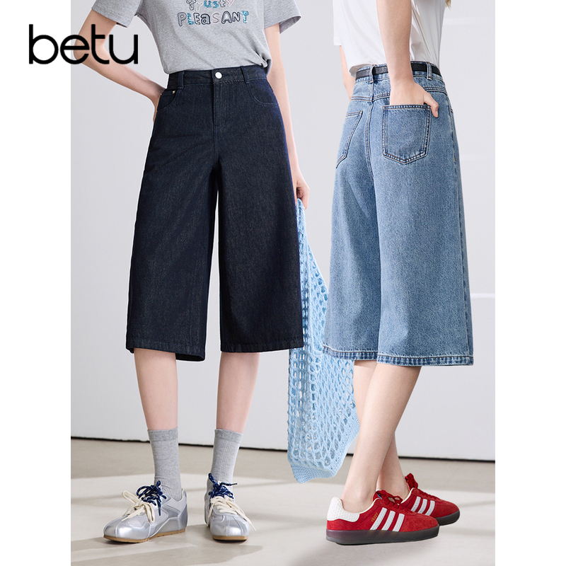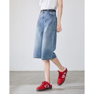 小个子阔腿裤 新款 女2026年夏季 betu百图磨白水洗百搭牛仔六分裤