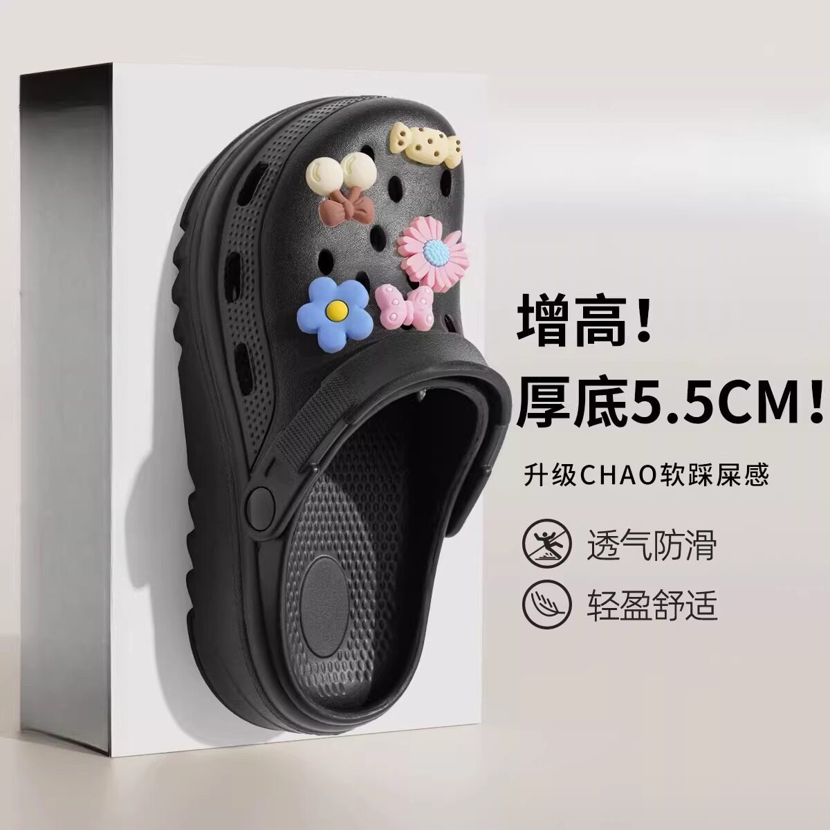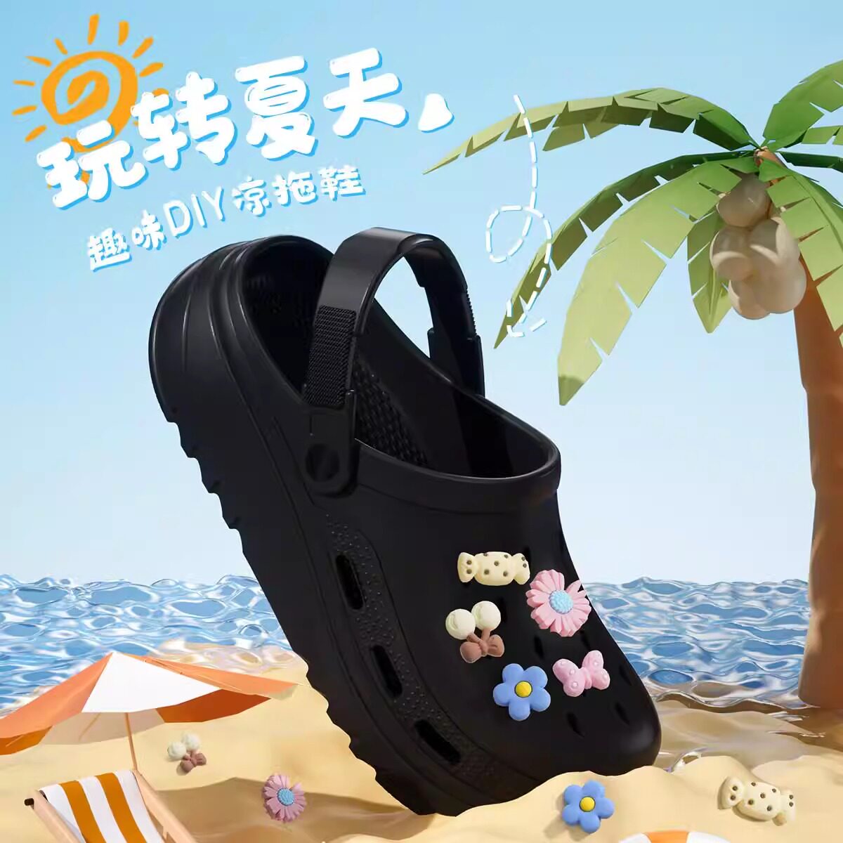 外穿2026新款 夏季 eva防滑防臭 厚底女款 趣味diy踩屎感增高洞洞鞋