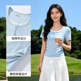 新款 女2026夏季 早春绝美一整套穿搭H 半身裙套装 班尼路S&K系列短袖