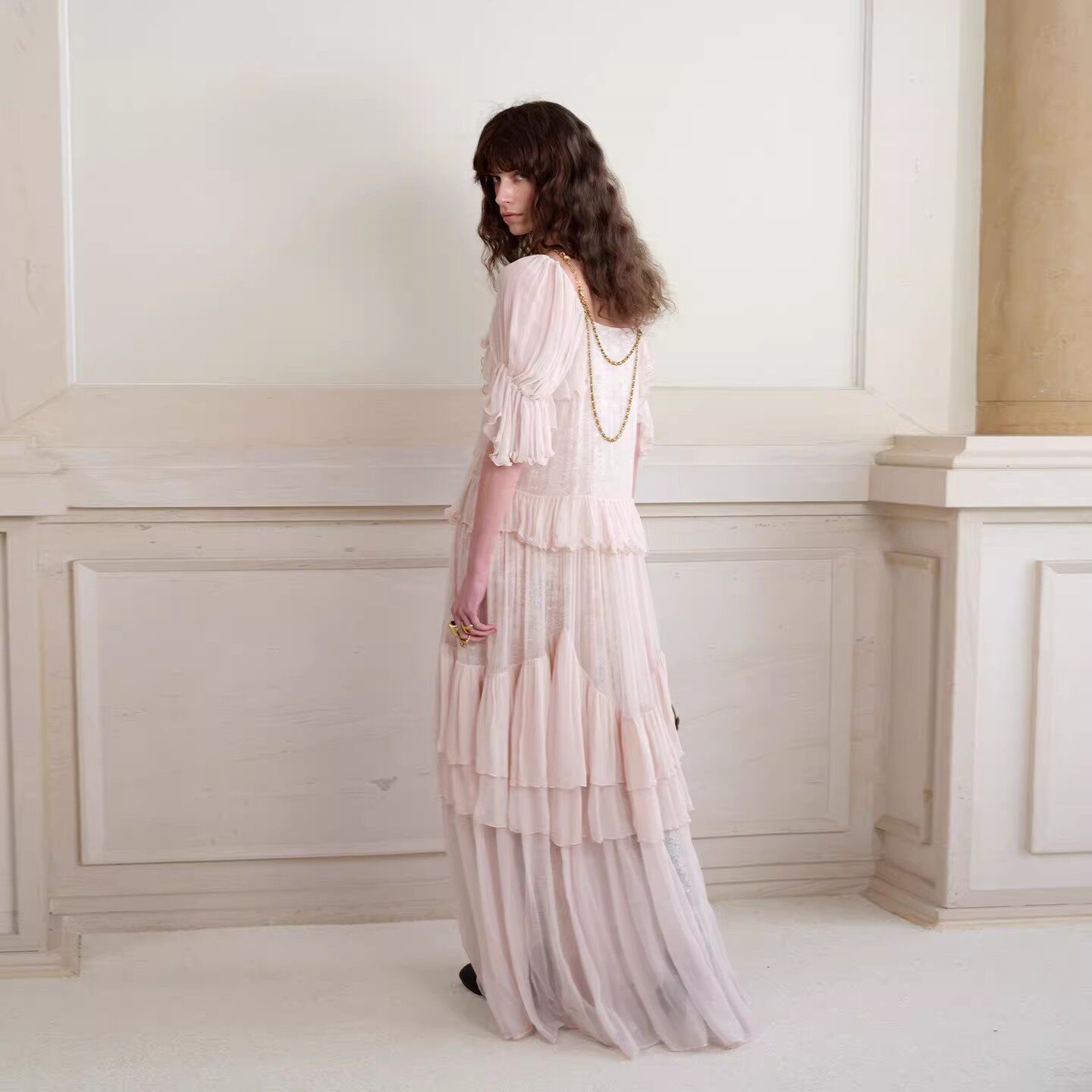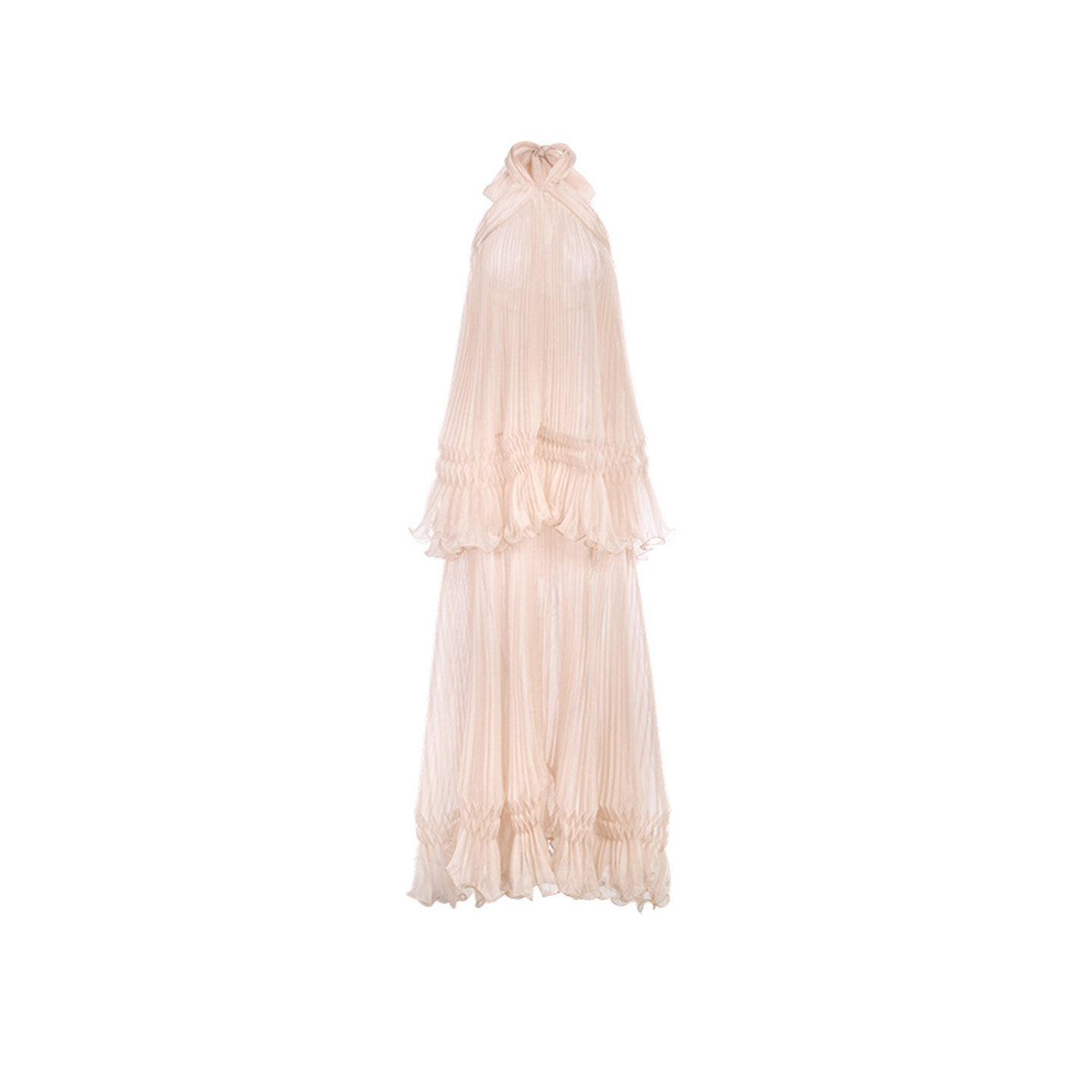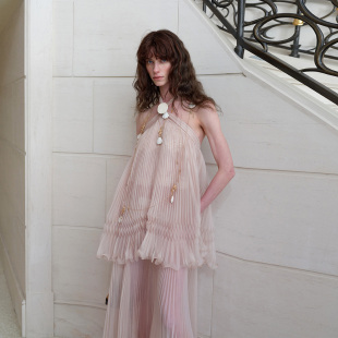 2026春夏新款 hug Sonata 薄纱定位压褶挂脖绑带连衣裙 Cello