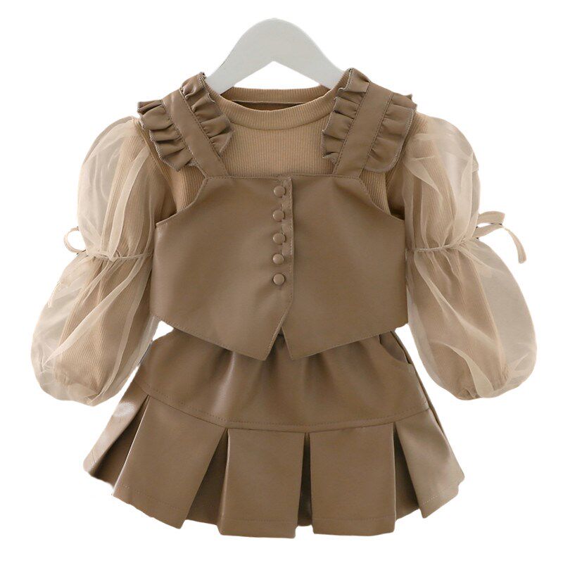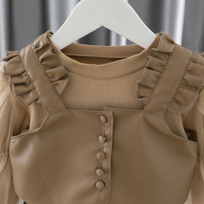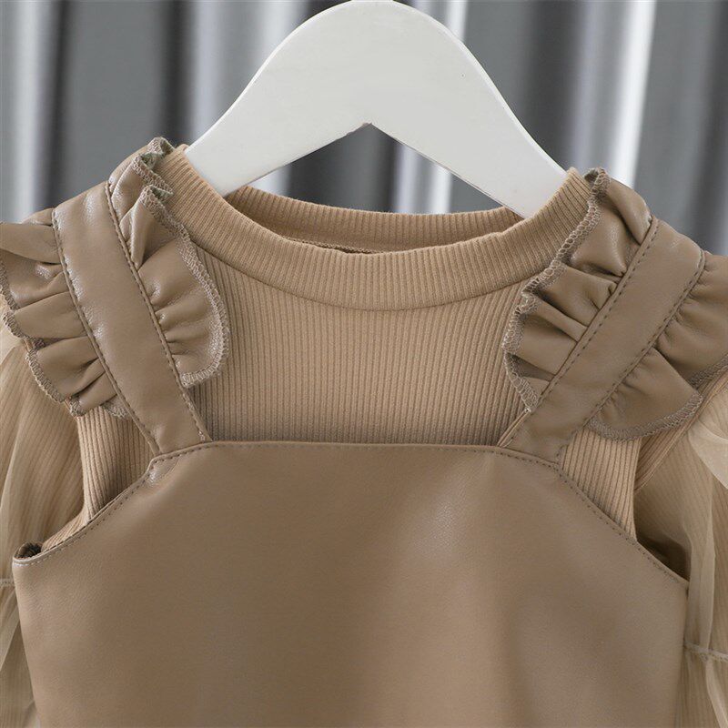 裙子儿童春秋季 洋气时髦宝宝套装 女孩皮衣短裙潮 2024新款 女童秋装