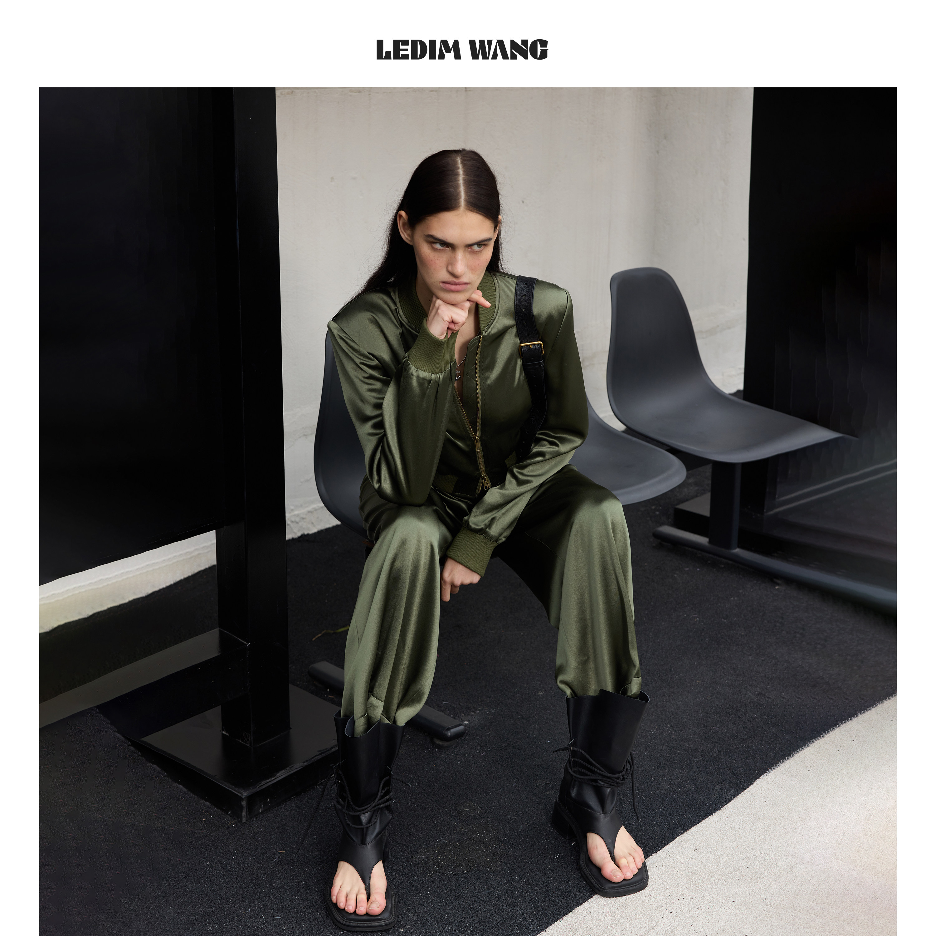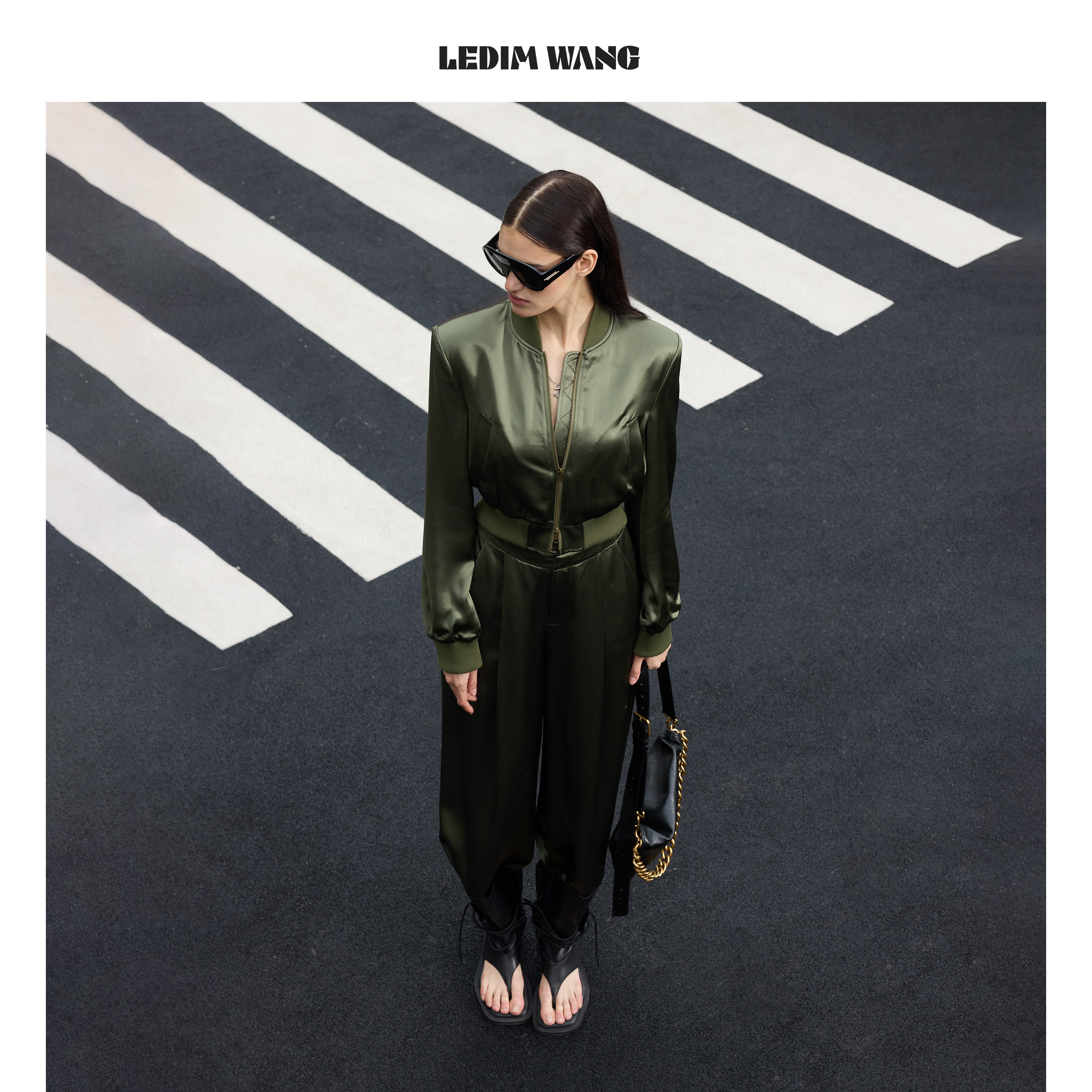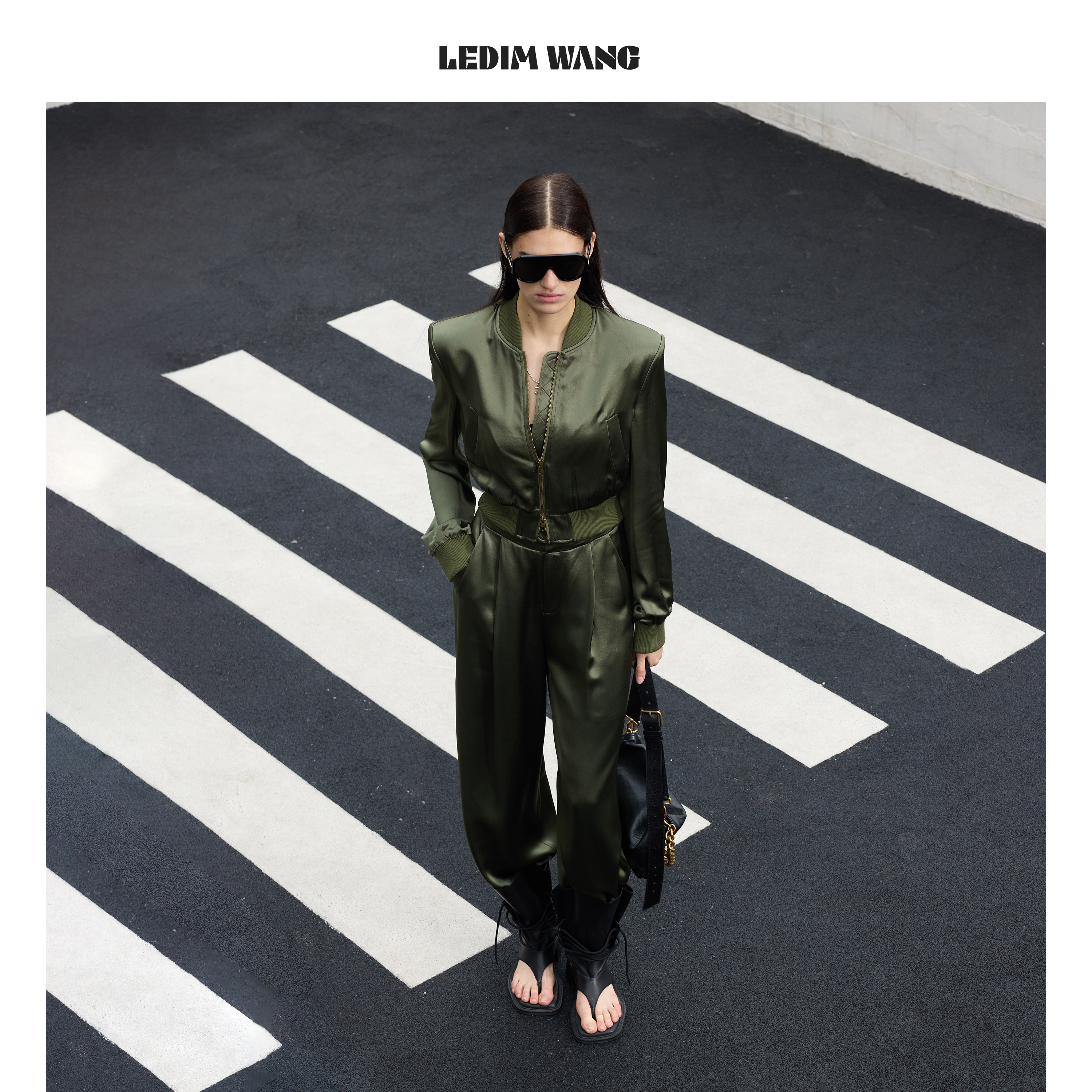 2026春夏新款 LEDIM 女军绿色夹克外套阔腿裤 套装 WANG垂感醋酸时尚