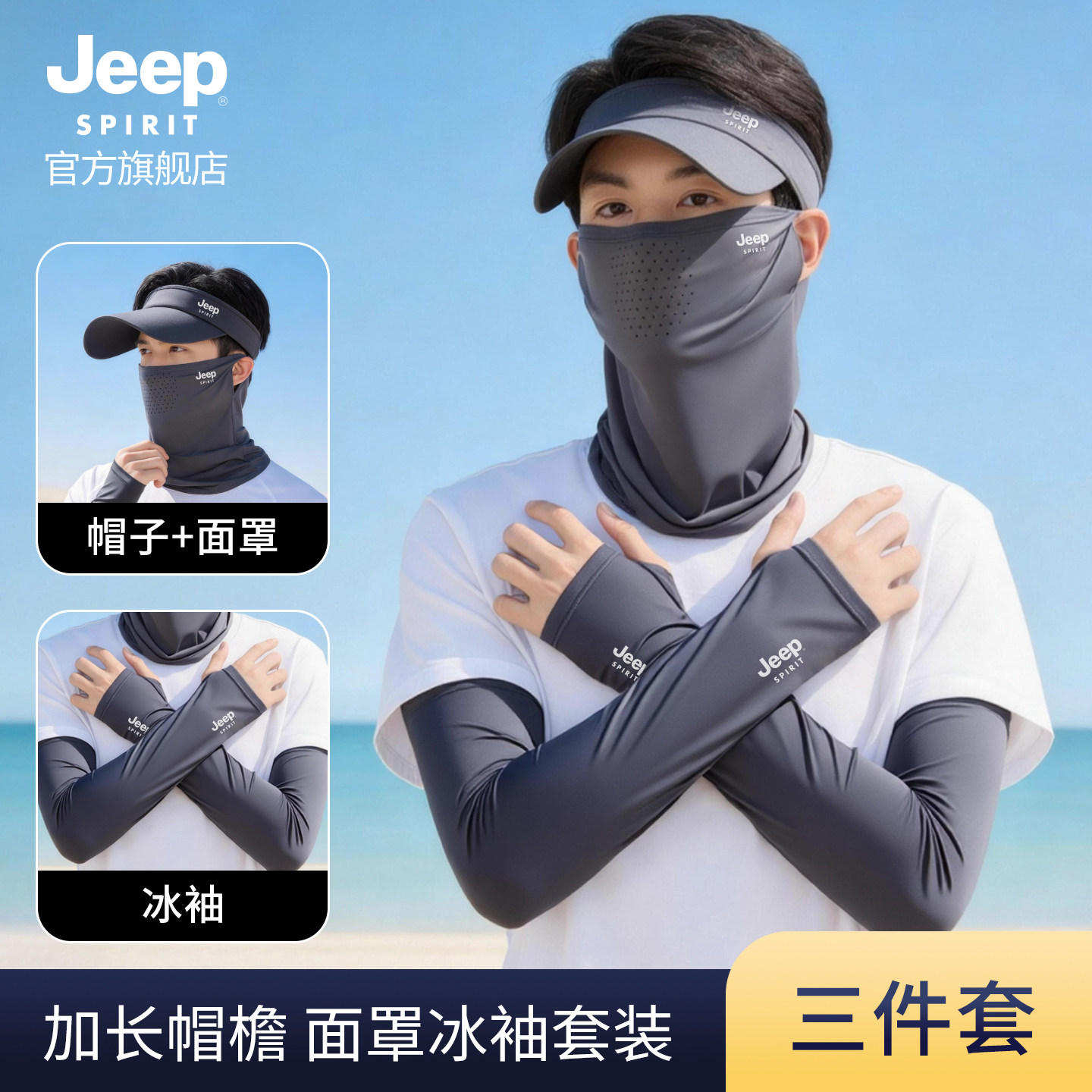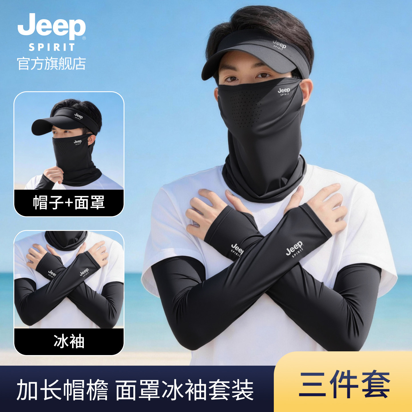 套 口罩骑行钓鱼防紫外线冰丝袖 JEEP SPIRIT吉普防晒面罩帽子男士
