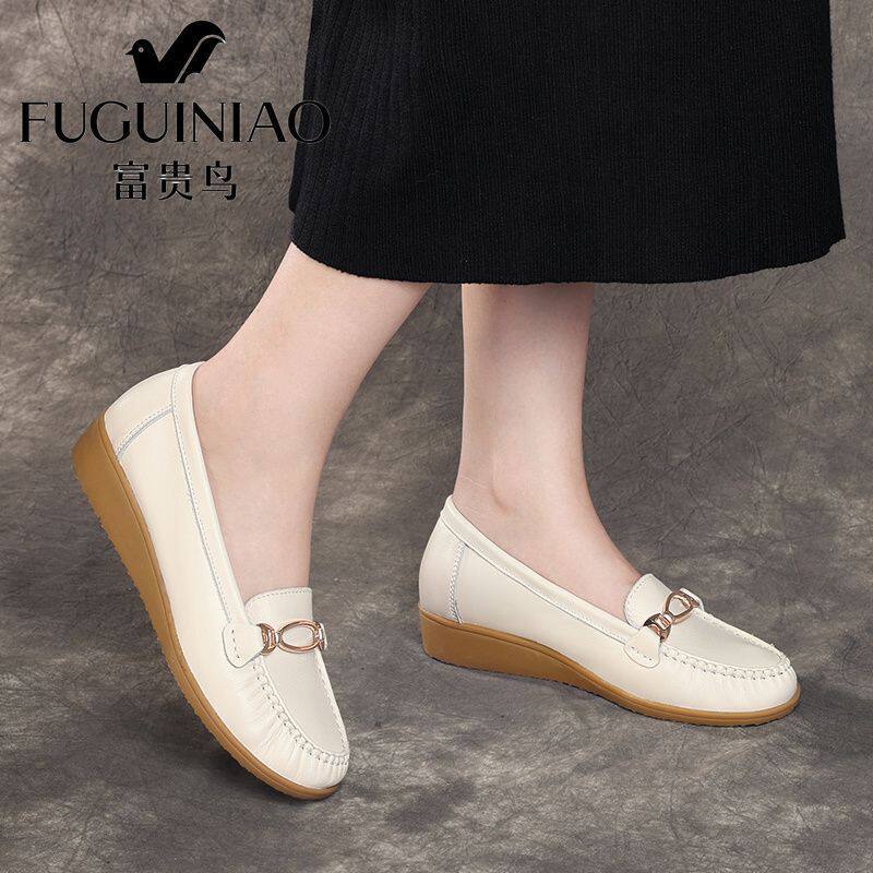 正品 坡跟意脚蹬平底鞋 妈妈豆豆女鞋 富贵鸟软底头层牛皮女士单鞋